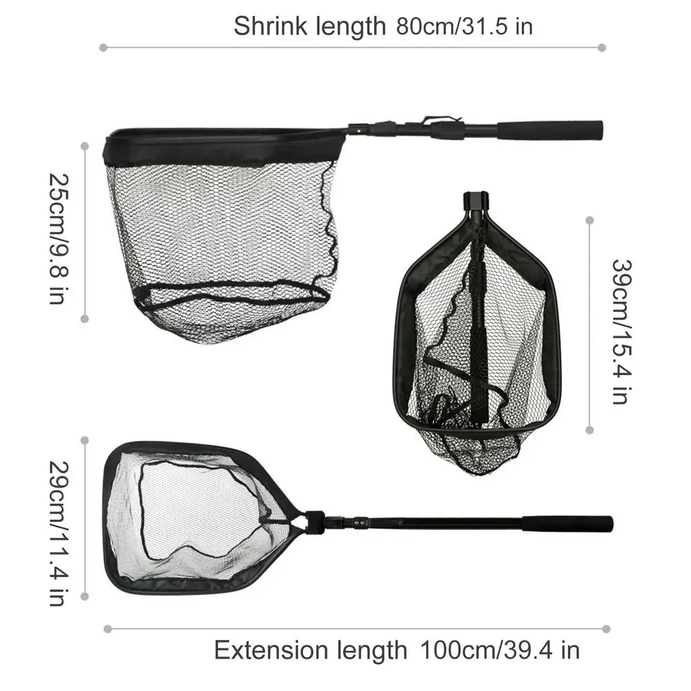 1. Складная рыболовная сеть: складная сеть, вытяните складной переключатель, чтобы сложить сетчатую головку, уменьшая пространство для хранения, складное хранение и телескопическую ручку, в пределах досягаемости. Две секции можно скручивать, развернутая длина одного сечения составляет около 31,5 Дюймов, развернутая Длина двух секций составляет около 39,4 дюймов, а Складная и усадка: около 39 см/15,4 дюйм (ов).