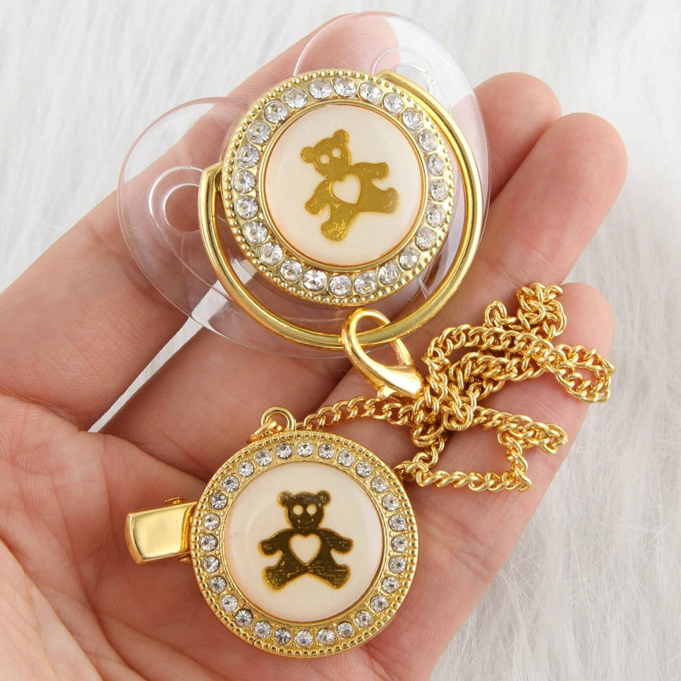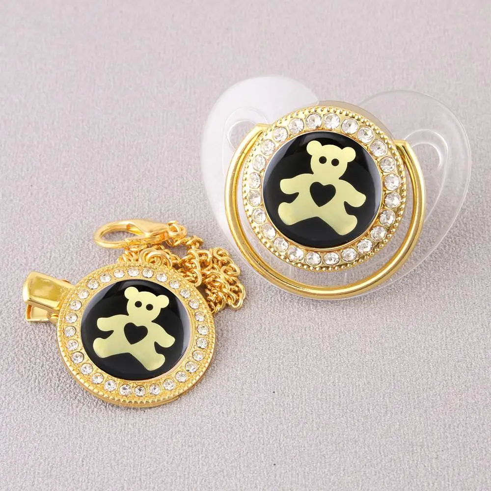 Шикарная Роскошная пустышка с розовым медведем для младенцев, силиконовая Ортодонтическая Чистая Детская пустышка, соска для сна, от 0 до 12 месяцев