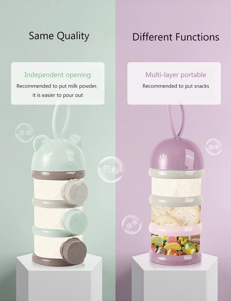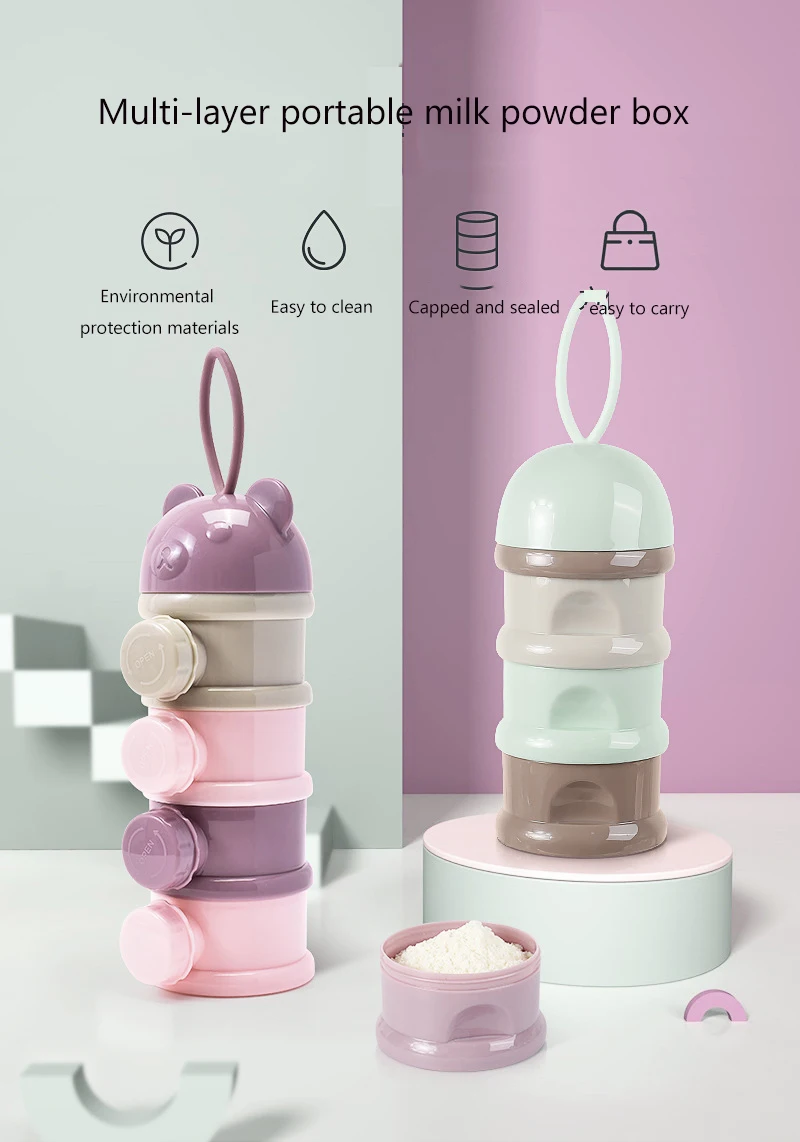 3 / 4 слоя медведь стиль портативная детская коробка для хранения еды эфирные злаки младенческой молочный порошок коробка дети контейнер для закусок