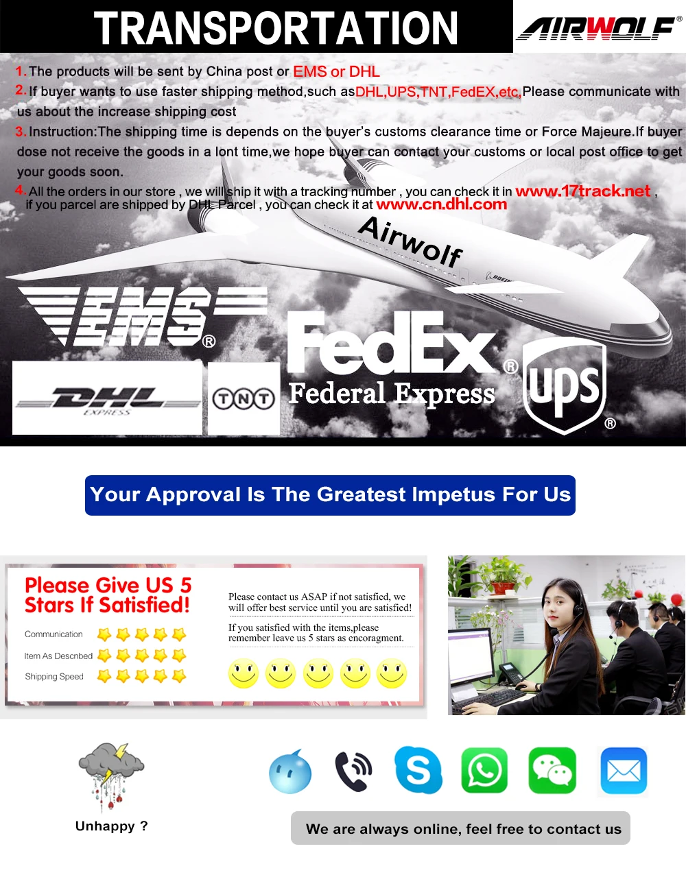 Примечание.Если метод бесплатной доставки не показан в вышеуказанных странах, вы можете связаться с нашей службой поддержки клиентов AIRWOLF, чтобы изменить стоимость доставки!