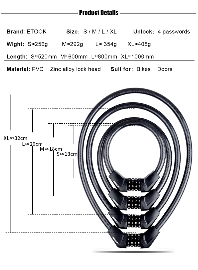 1. Четыре цифровых паролей. 2. Головка замка из цинкового сплава