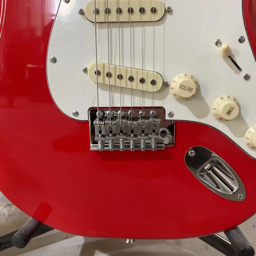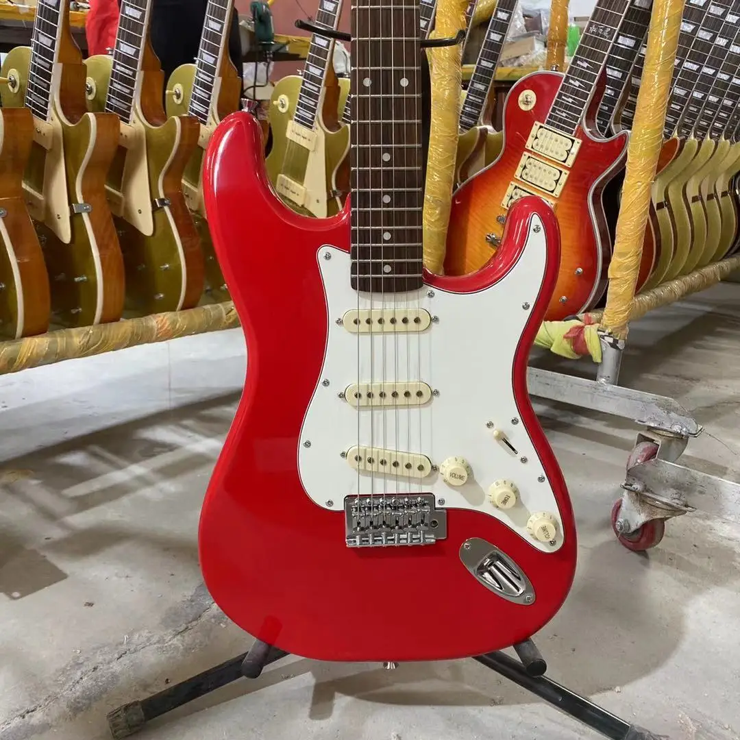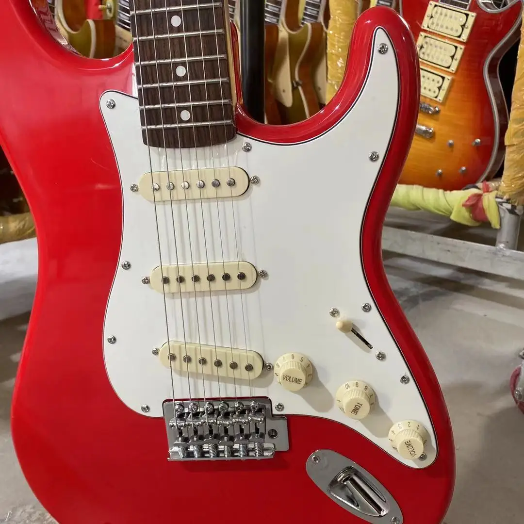 Электрогитара Strat красного цвета липа тела палисандр белая накладка серебристой фурнитурой; Высокое качество; Бесплатная доставка