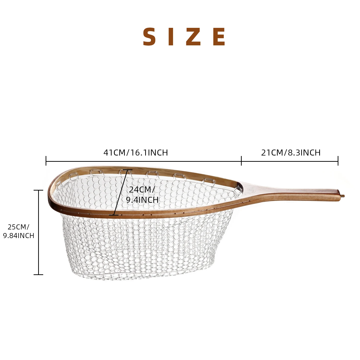 -Прозрачный прорезиненный сетчатый материал, нежный на рыбе и не запутывается, не загнивает или плесень.
