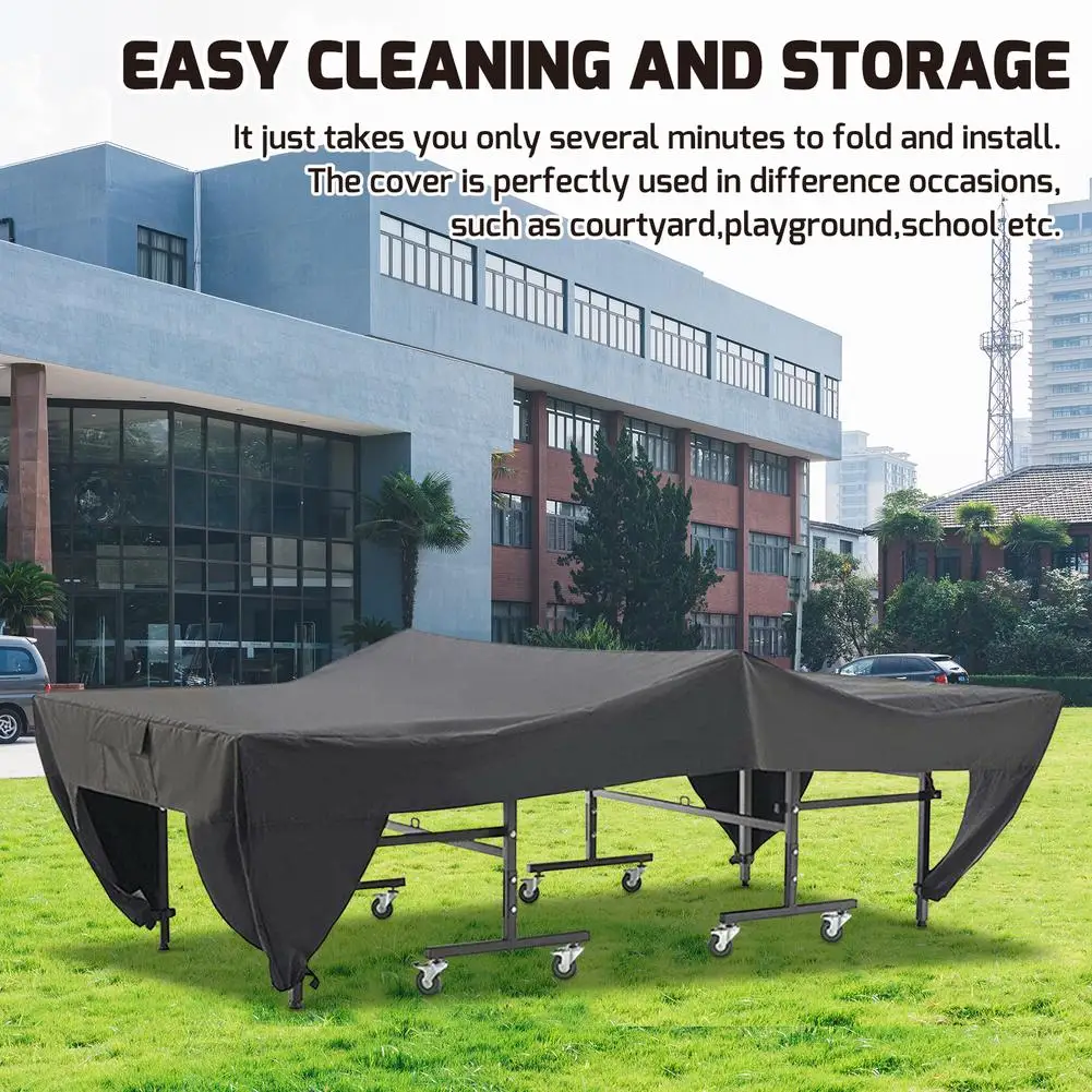 Чехол для стола для пинг-понга, водонепроницаемый, пылезащитный, портативный, складной, легко чистится, изготовлен из высококачественной черной ткани Оксфорд 420D. Покрытие для настольного дождя можно быстро установить и хранить, избегая пыли, снега, мороза, солнца, дождя и т. д. и продлевая срок службы вашего стола.