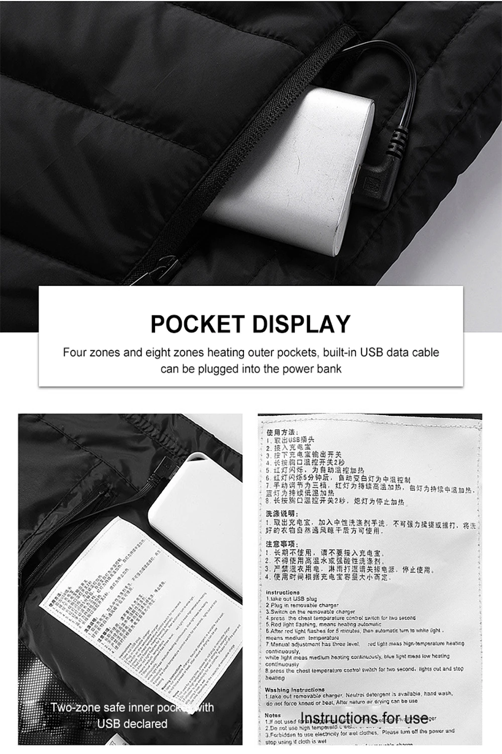 5. Широкий спектр применения: Этот жилет с подогревом идеально подходит для катания на лыжах, зимней рыбалки, катания на горных велосипедах, велоспорта, кемпинга, снежного туризма, охоты, активного отдыха, зимней улицы, повседневного офиса, И т. д.