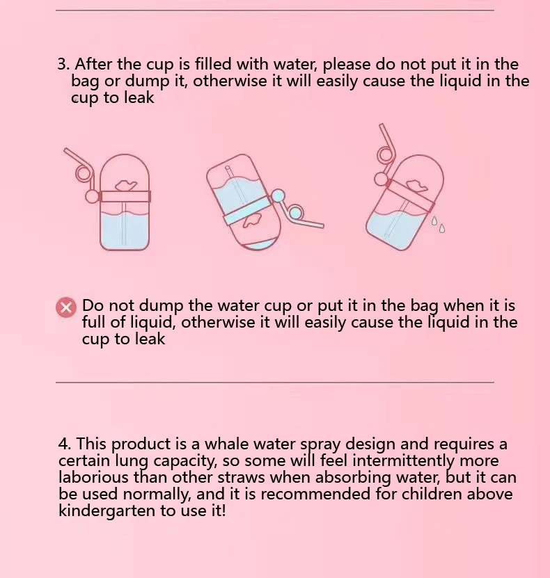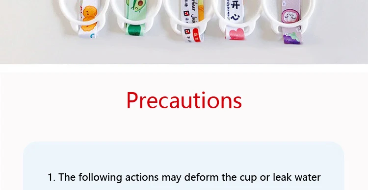 Пожалуйста, не парите стерилизуйте или не варите стаканчик для воды, иначе он деформирует крышку и корпус, пожалуйста, используйте теплую воду и мягкую воду, чтобы быть нежным.