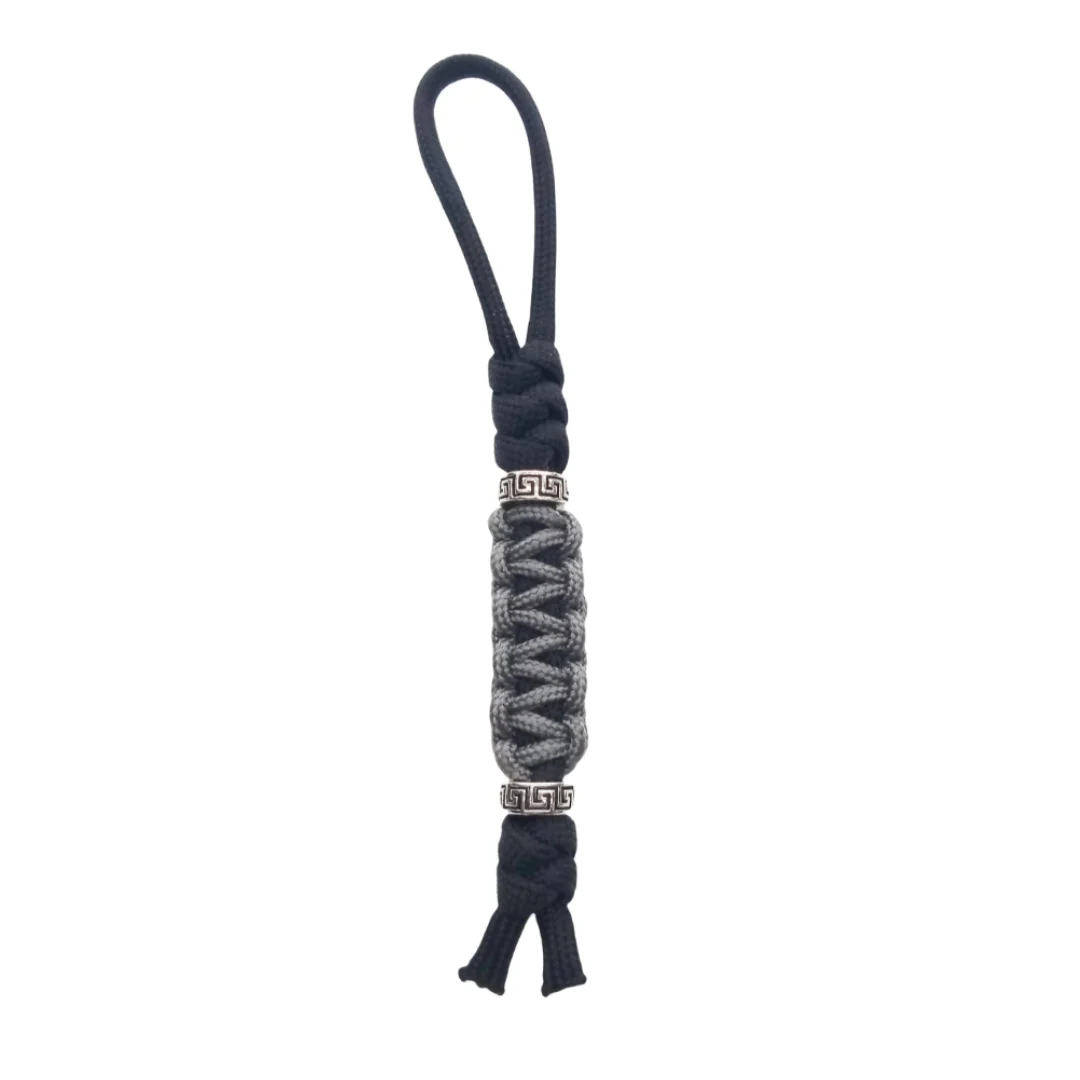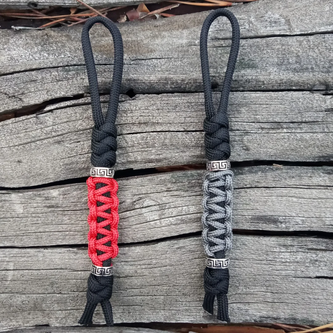 Темляк для складного ножа или брелок на ключи. Вы оцените этот оригинальный аксессуар, приятная на ощупь текстура, яркий цвет. Плетение из двух видов паракорда. Основной чёрный 4 мм, красный и серый 2 мм в диаметре.