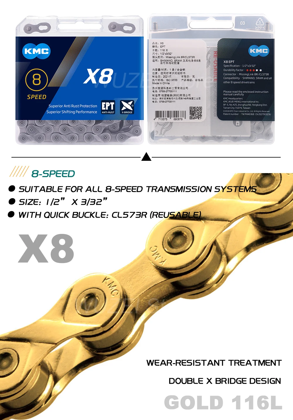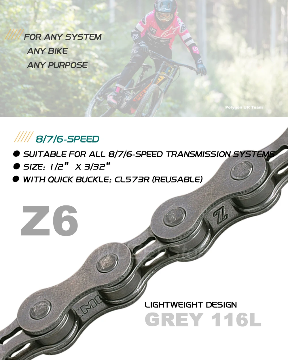 KMC 8 скоростная внутренняя пластина коническая цепьСерая цепочка Z6