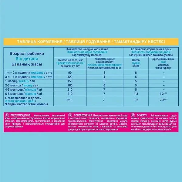 Updated composition with олигосахаридами: whey milk деминерализованная, skim milk, vegetable oil (sunflower высокоолеиновое, coconut, soybean, oil of мортиереллы альпины), лактоза, fish oil, calcium nitrate, potassium hydroxide, potassium citrate, potassium citrate, minerals (iron sulphate, zinc sulphate, copper sulphate), vitamin-mineral premium (L-аскорбат sodium (s), DL-Alpha-токоферол acetate (e), nicotinamide (pp), calcium d-пантотенат (B5), тиамин мононитрат (B1), riboflavin (B2), ретинола acetate (and), пиридоксин hydrochloride (B6), sulfate manganese, йодид potassium, folic acid (в9), селенат sodium, филлохинон (K),D3 холекальциферол (D), D-biotin (в7), цианкобаламин (B12), inositol, таурин) magnesium chloride, олигосахариды 2 "FL, emulsifier soy lecithin, potassium chloride, regulator acidity citric acid, L-фенилаланин, phosphate sodium, culture бифидобактерий лактис (not less than 1 х10 ^ 6 кое/g), sodium chloride, calcium hydroxide, нуклеотиды, L-гистидин, L-carnitine, Сывороточный protein. Composition in the old design of the package: milk serum, milk is low-fat, a mixture of vegetable oils (sunflower, coconut, soy, oil) magnesium chloride, potassium hydroxide, potassium chloride, soy lecithin, acid (citric acid), citrate of potassium Vitamins (l-аскорбат sodium (s), DL-alpha tocopherol acetate (e), nicotinamide (pp), calcium d-пантотенат (B5), ретинола acetate (a), тиамина мононитрат (B1), пиридоксин hydrochloride (B6), riboflavin (B2), folic acid (в9), D3 холекальциферол (D), филлохинон (K), цианкобаламин (B12) The D-biotin (в7), sodium phosphate, sodium chloride, calcium hydroxide, таурин, sulphate iron (II), L-гистидин, inositol, zinc sulphate, culture bifidobactery (not less than 10 ^ 7 CYO/g), nucleotides, L-kartithin, copper sulfate, sulfate |