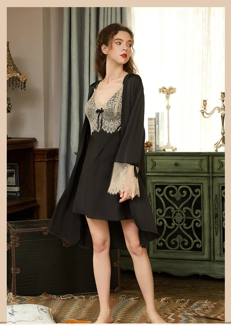 Посылка:1 * Женская пижама; Платье на бретельках + 1 * Женский Пижамный Халат