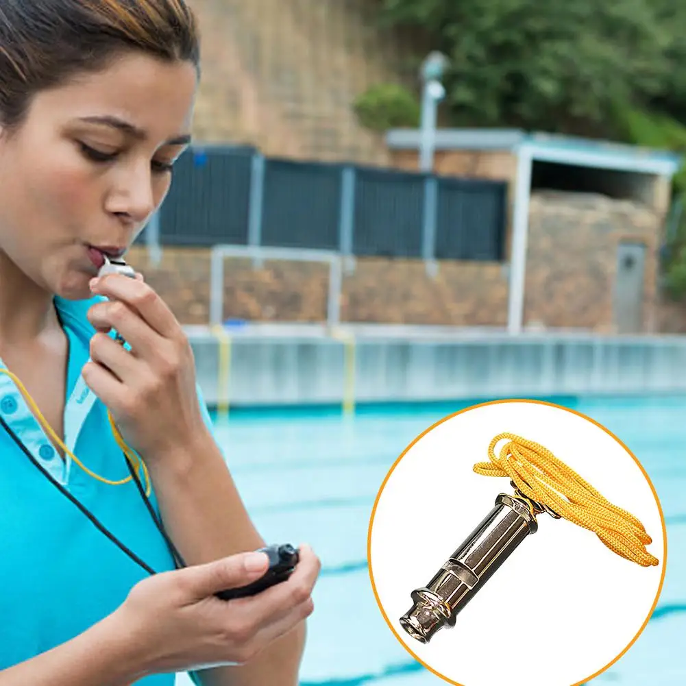 Свисток для тренера, безопасный свисток, аварийный свисток с двойной трубкой, свисток из нержавеющей стали для занятий спортом на открытом воздухе, кемпинга