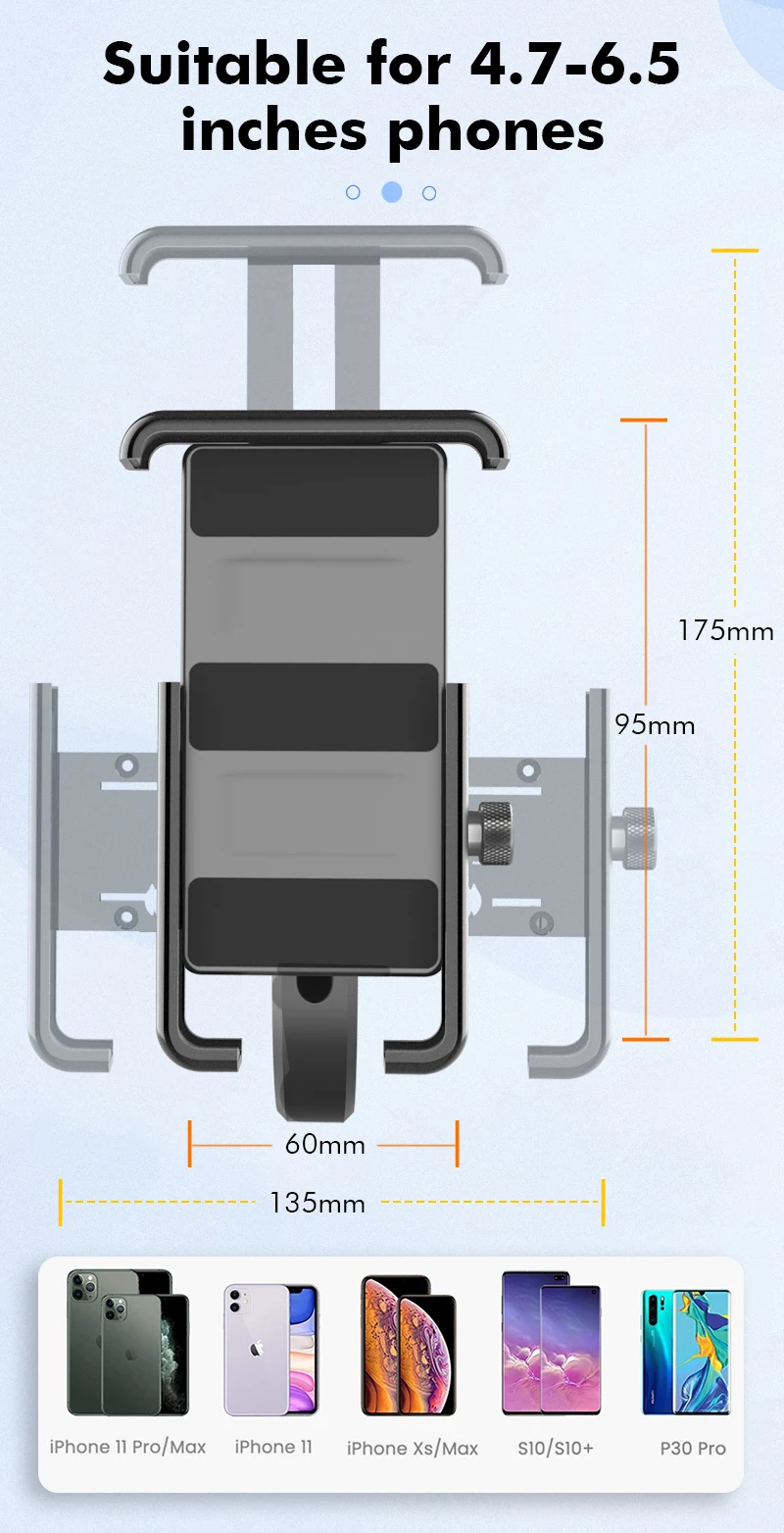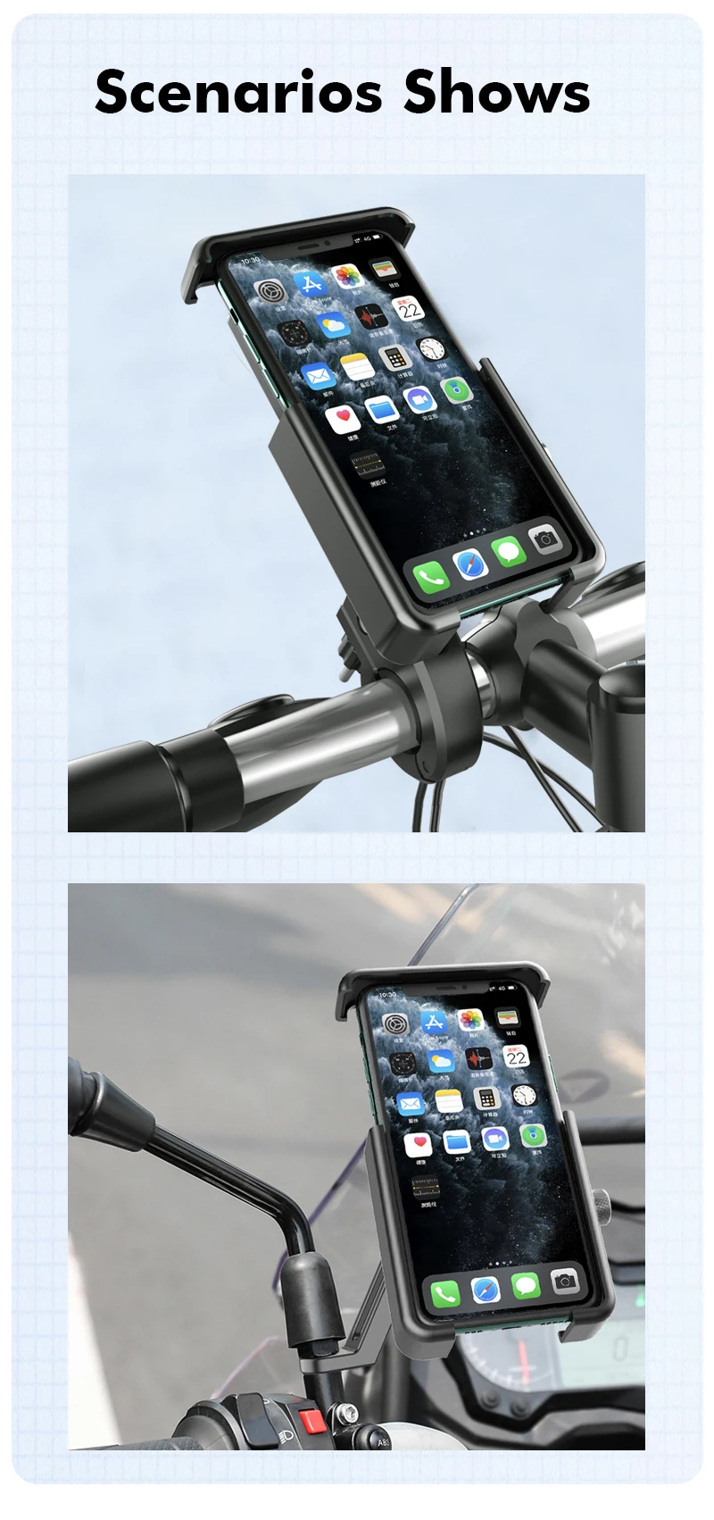 【Wide compatibility】Motorcycle Телефон держатель подходит для любого смартфона с 4,7 "-6,8" экран. Он подходит для iPhone 12 Pro Max/12/12 Pro/X/XS MAX/XR/8/8
