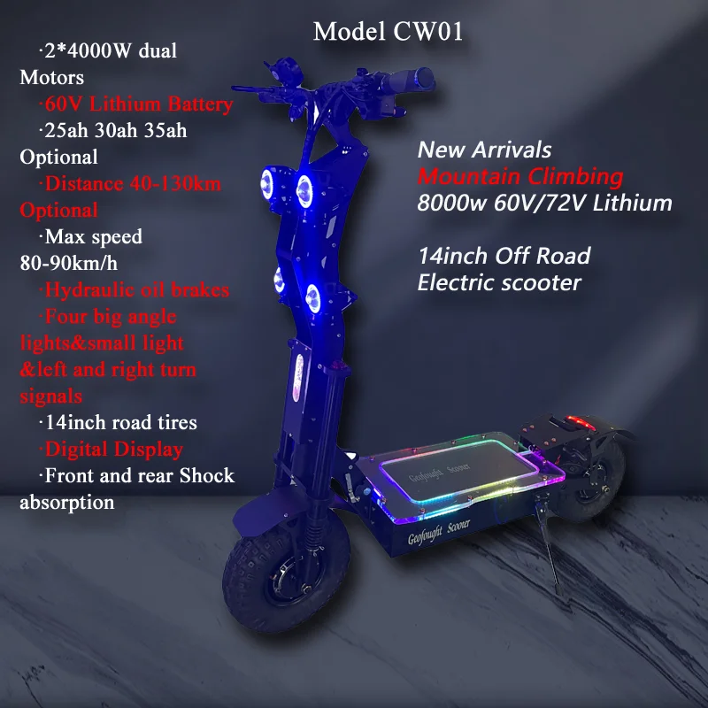 Geofught 72V 8000W 14 дюймов внедорожные шины электрический скутер
