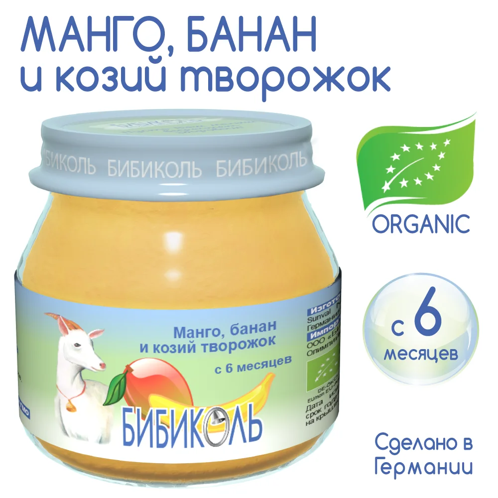Пюре манго, банан и козий творожок Бибиколь с 6 мес. 80гр