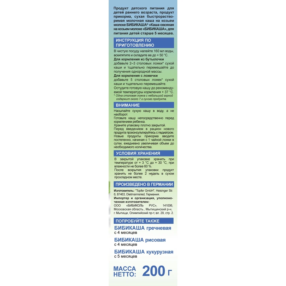 Каша овсяная Бибикаша на козьем молоке с 5 мес. 200гр