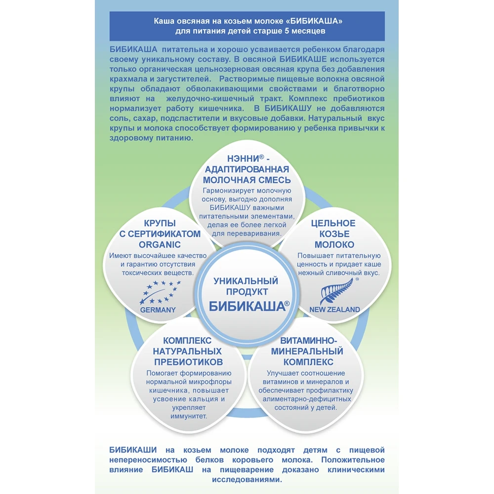 Каша овсяная на козьем молоке «Бибикаша» сухая быстрорастворимая,