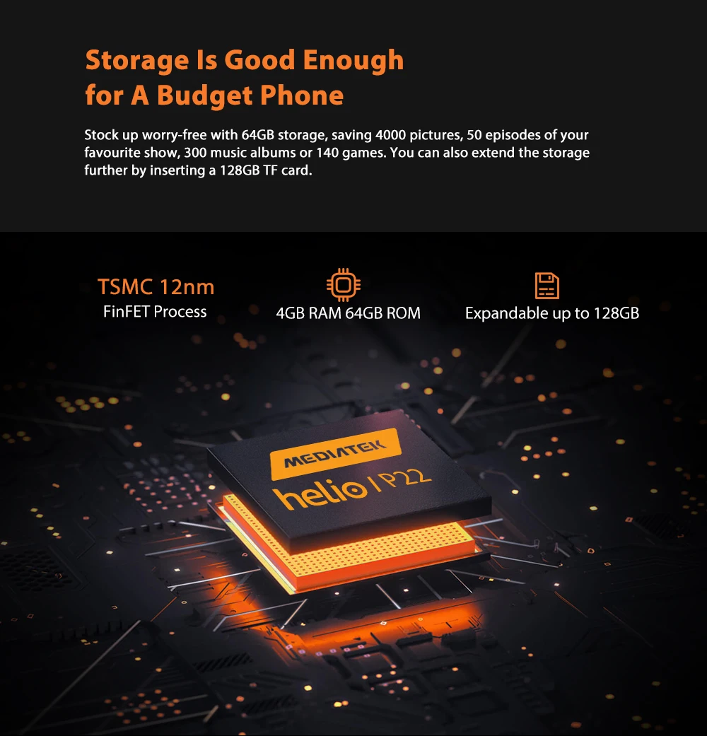 ЦП:MTK6762V/WD | ОС:Android 10,0 | |
