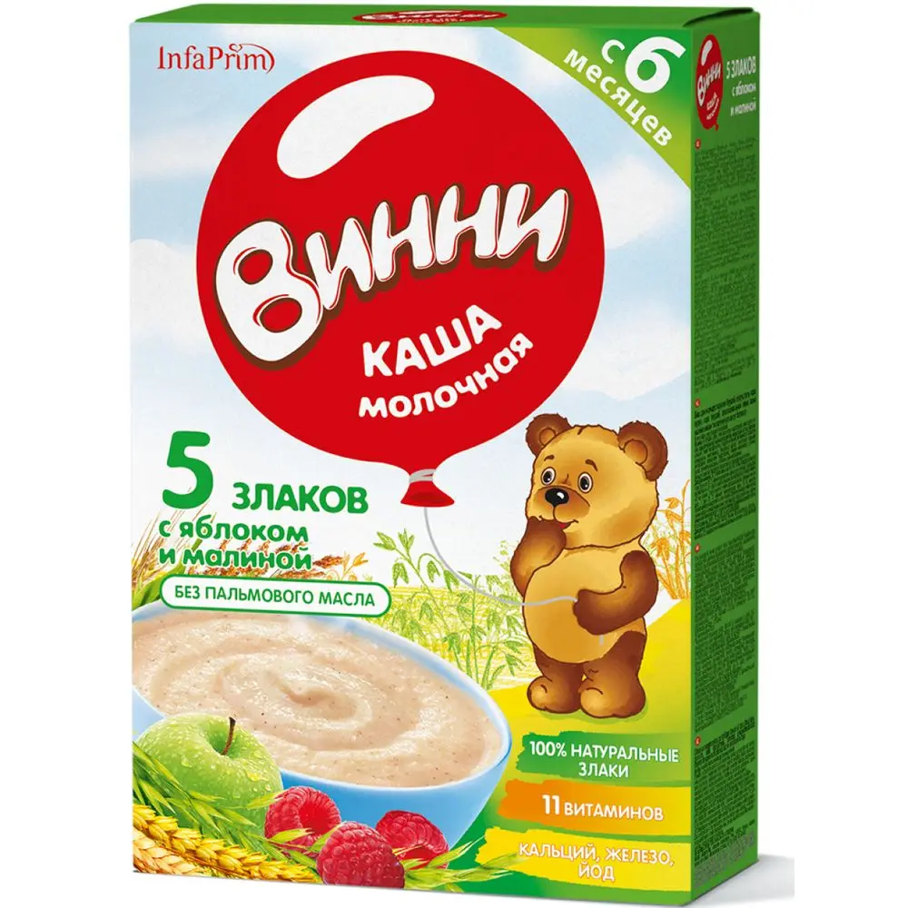 Каша молочная Винни 5 злаков с яблоком и малиной, с 6 мес., 200 гр