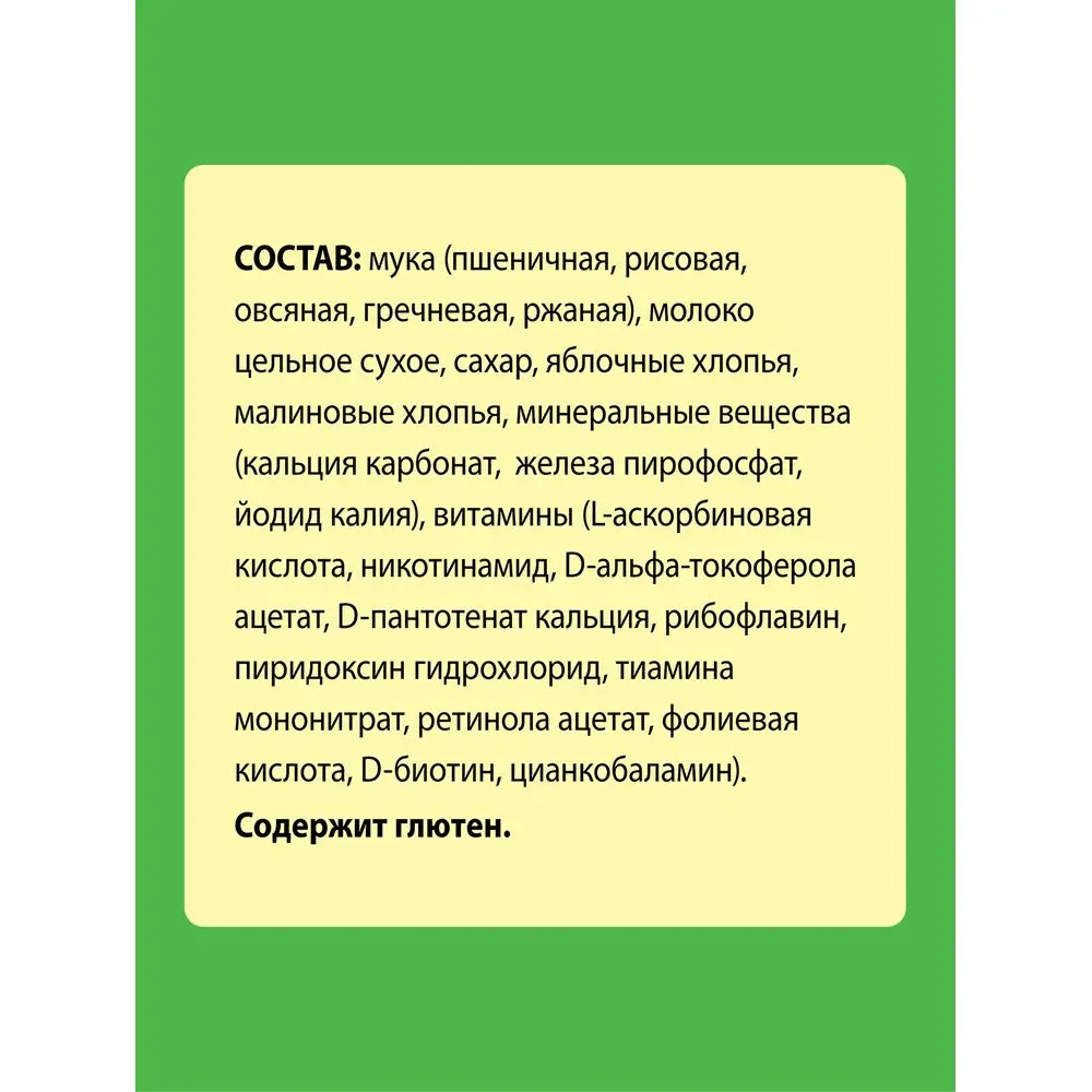 Каши из нескольких круп подходят для расширения рациона малыша старше 6 месяцев. Молочная каша 5 злаков с яблоком и малиной – это хорошая возможность для малыша познакомиться с новыми вкусовыми сочетаниями: злаки и фрукты в одной тарелке.
