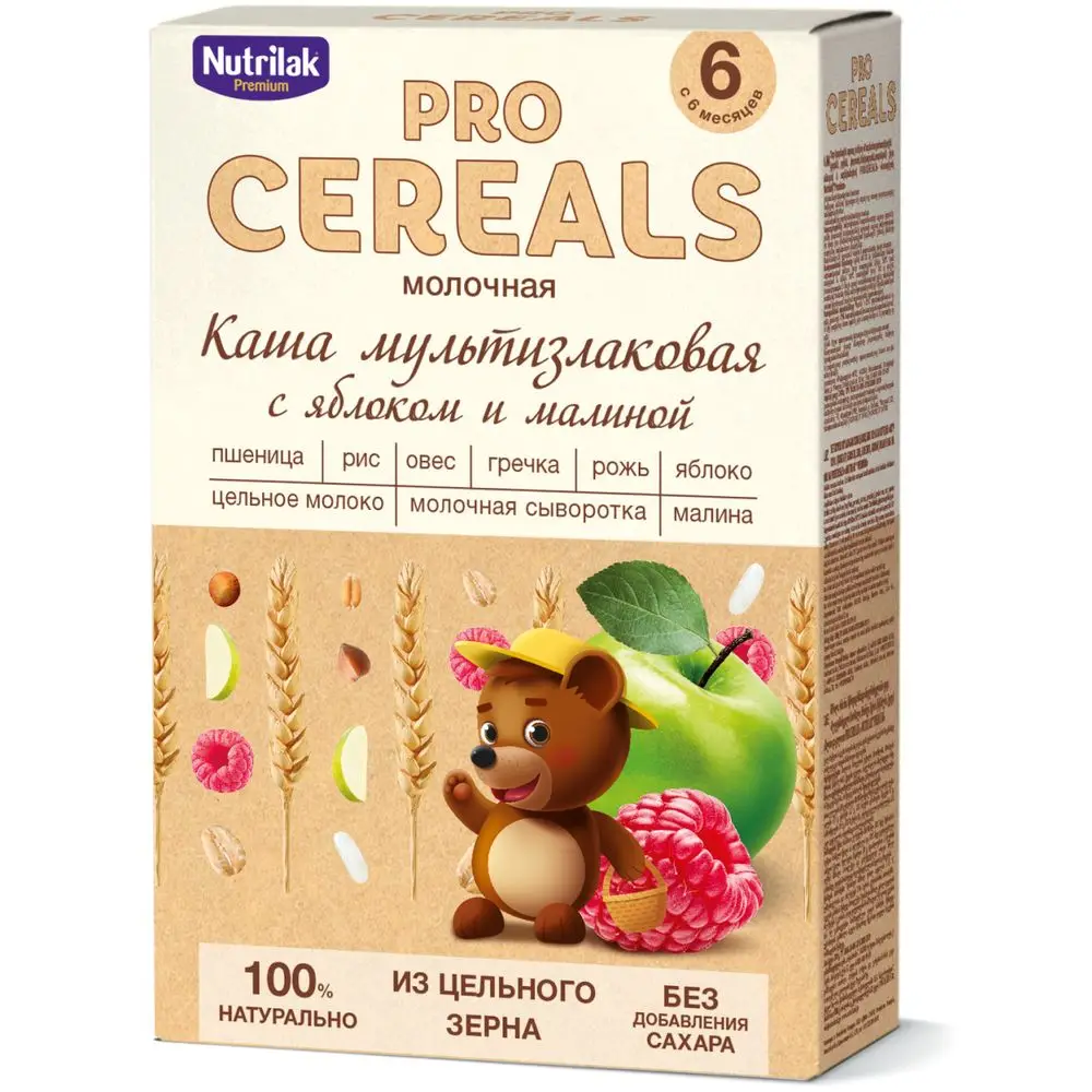 Каша молочная Нутрилак Премиум цельнозерновая "Мультизлаковая с яблоком и малиной PROCEREALS",с 6 мес., 200 гр