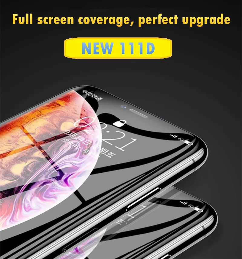111D закругленный край Полное покрытие защитное стекло на iPhone X 7 8 6 6S Plus закаленное защитное стекло для XR XS Max стеклянная пленка
