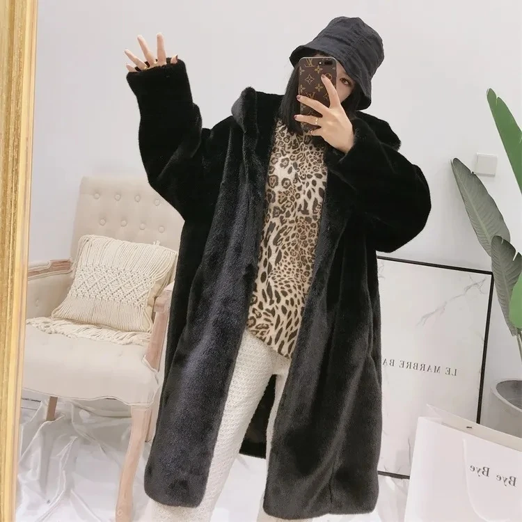 Зимняя имитация норки, бархатное пальто, новинка 2021, пальто из искусственного меха, парки для женщин, толстая свободная теплая верхняя одежда, плюшевая Женская куртка с капюшоном