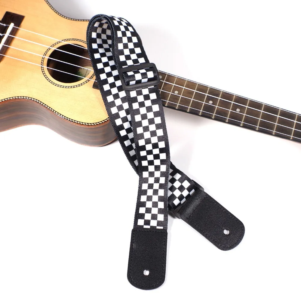 Регулируемый ремешок для укулеле, черный, белый, в клетку, укулеле, кожаный пояс, аксессуары