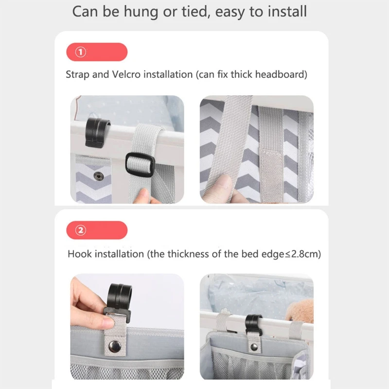 Простота установки: волшебная наклейка и монтажная Пряжка делают его более удобным для фиксации Сумки на стороне детской кровати.