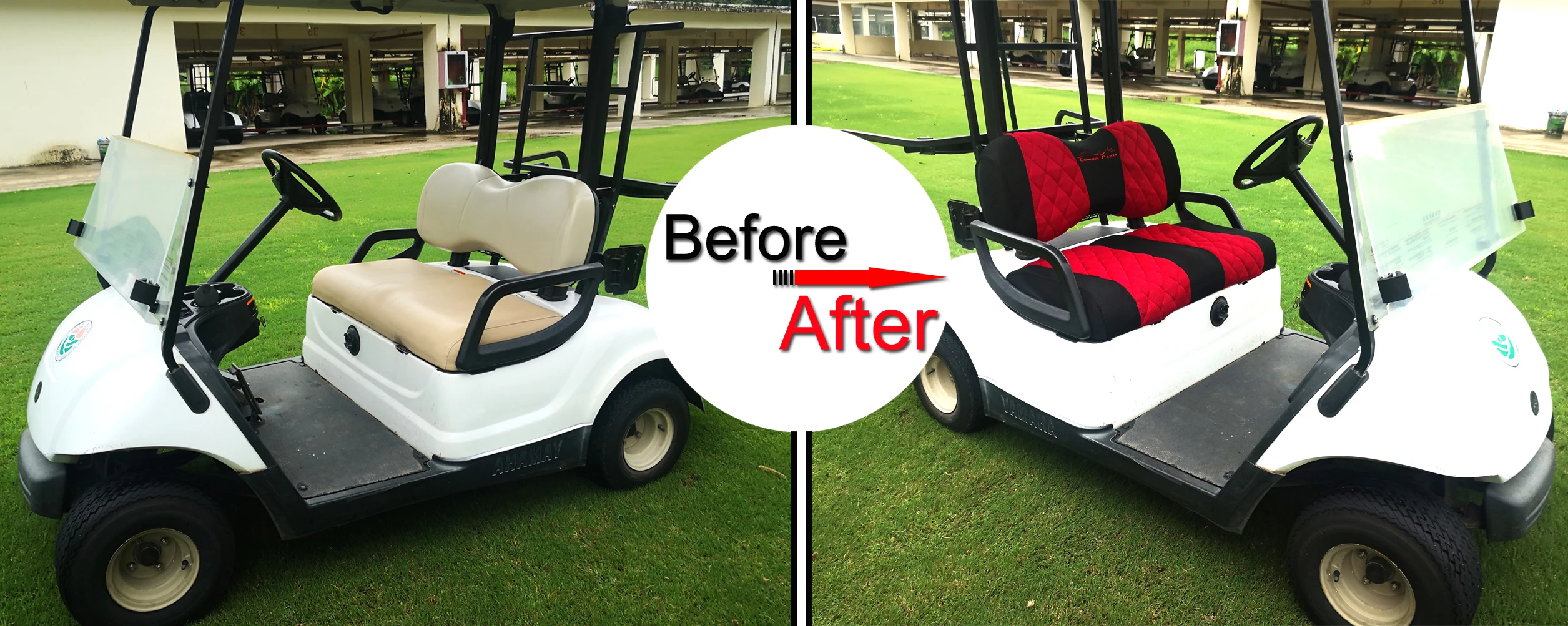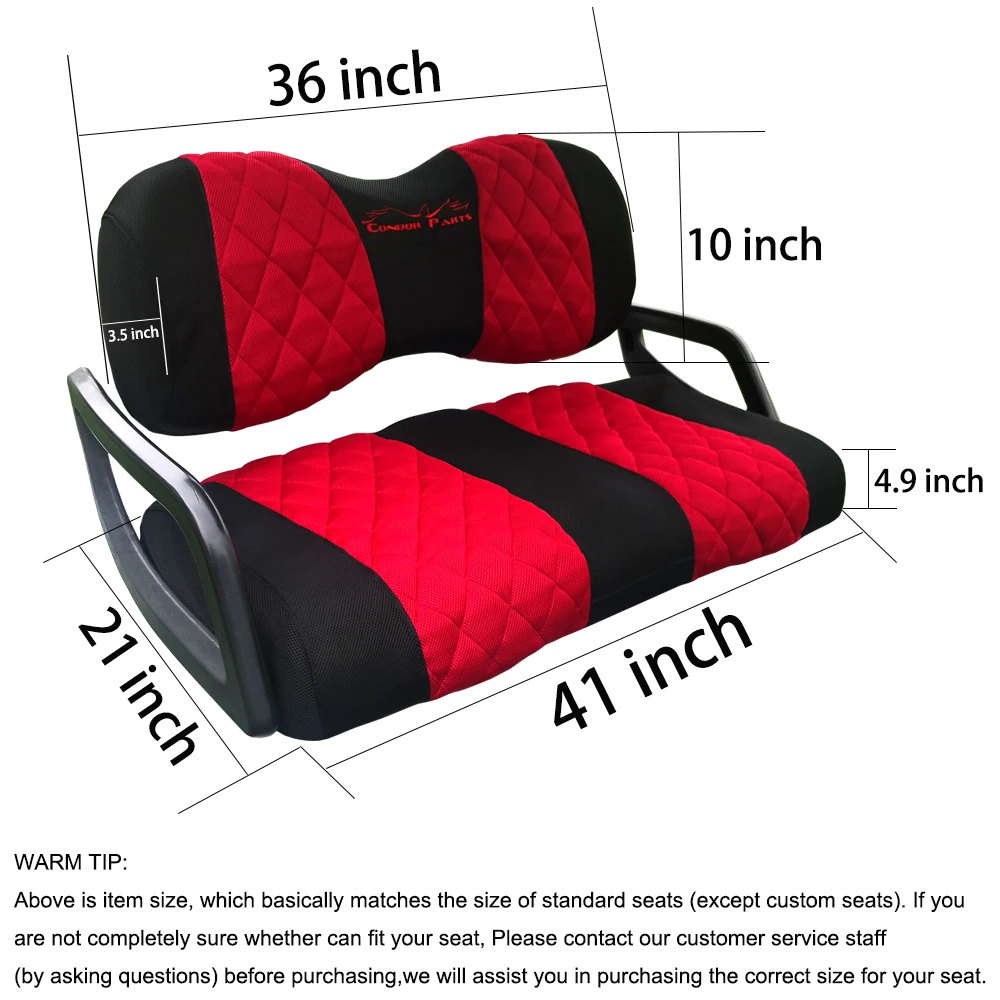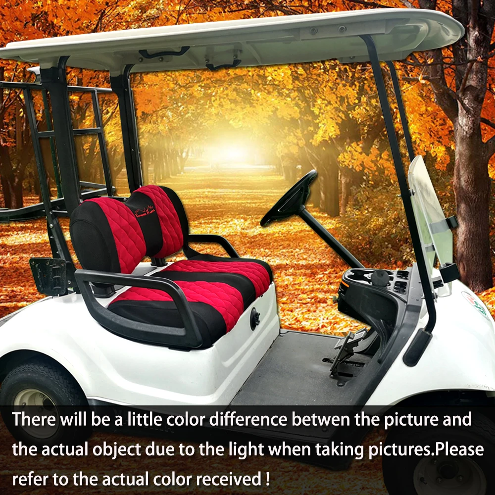 3. Эффект после установки потрясающий:Они сделали 100% разницу в внешности. Издалека они выглядят как настоящие сиденья, делают тележку для гольфа очень стильной. Действительно сделал тележку для гольфа более новой/чистой. Эта крышка сиденья является очень привлекательным обновлением для изношенной оригинальной обивки. Достаточно хорошо подходит для пятнистых и изношенных мягких сидений. Легко моется при загрязнении.