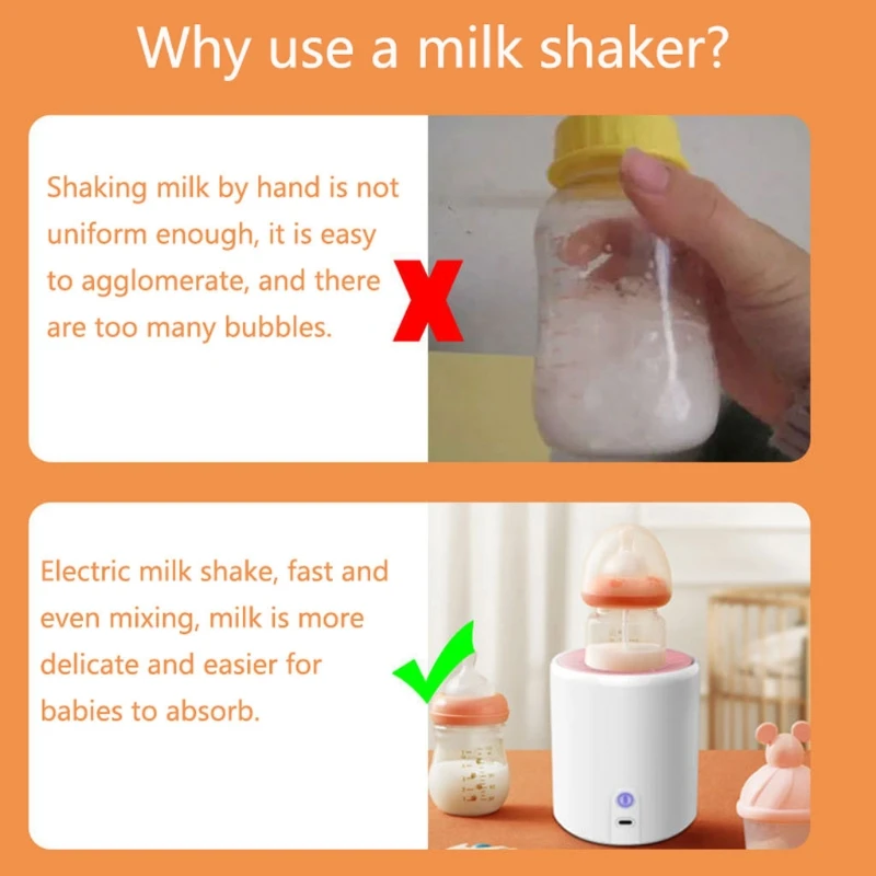 Автоматический шейкер для детских молочных бутылок: вращение на 360 °, равномерно трясет молочный порошок и не легко производить пузырьки. Молоко имеет более деликатный вкус, и ребенок легче впитывается.