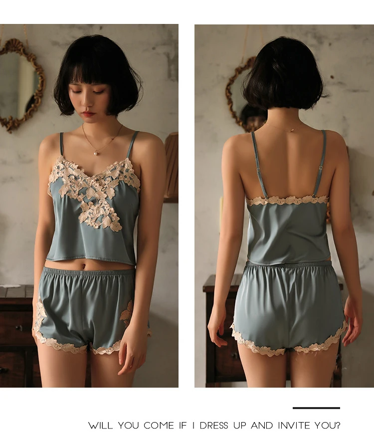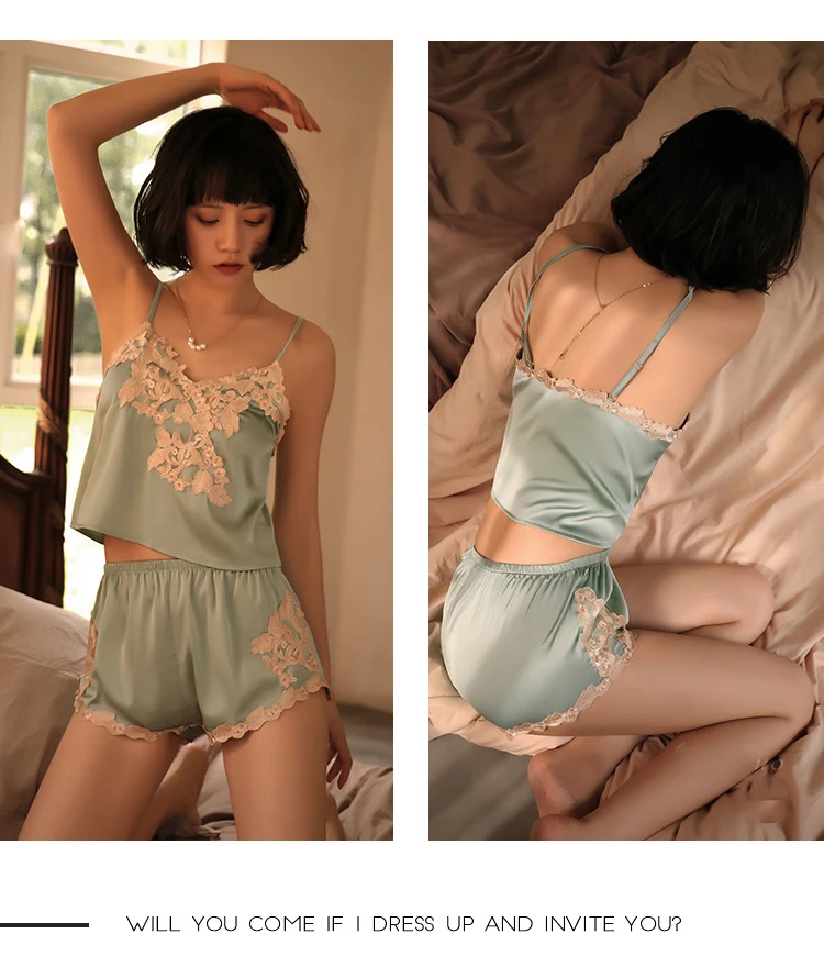 Женская сексуальная пижама, комплект для отдыха, шорты и топ, шелковая пижама, комплекты белья для сна, экзотическая домашняя одежда для сна, летние костюмы, Пижама