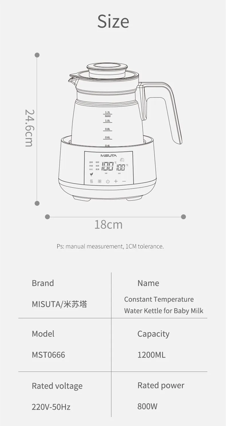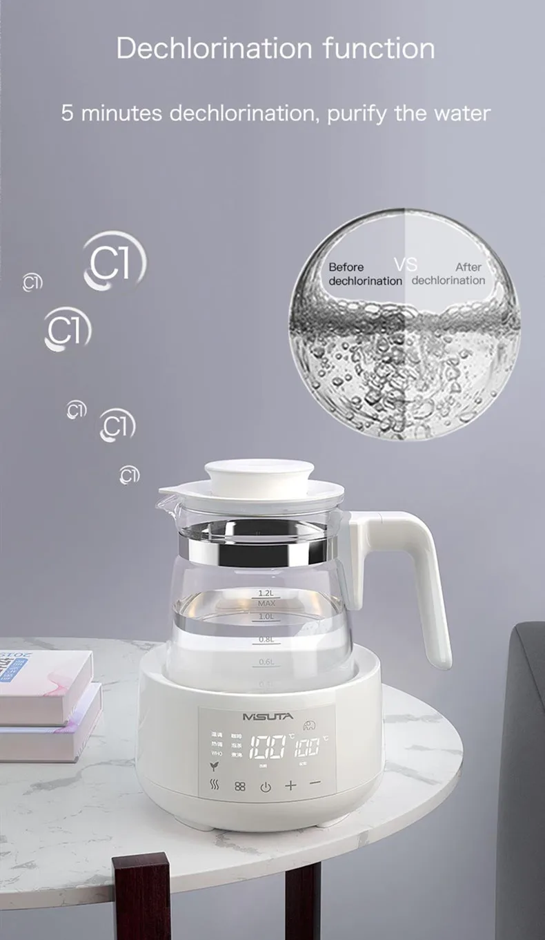 1200 мл чайник для воды с постоянной температурой 220 В, подогреватель молока для малышей, электрический стеклянный чайник, чай, кофе, «умный» чайник