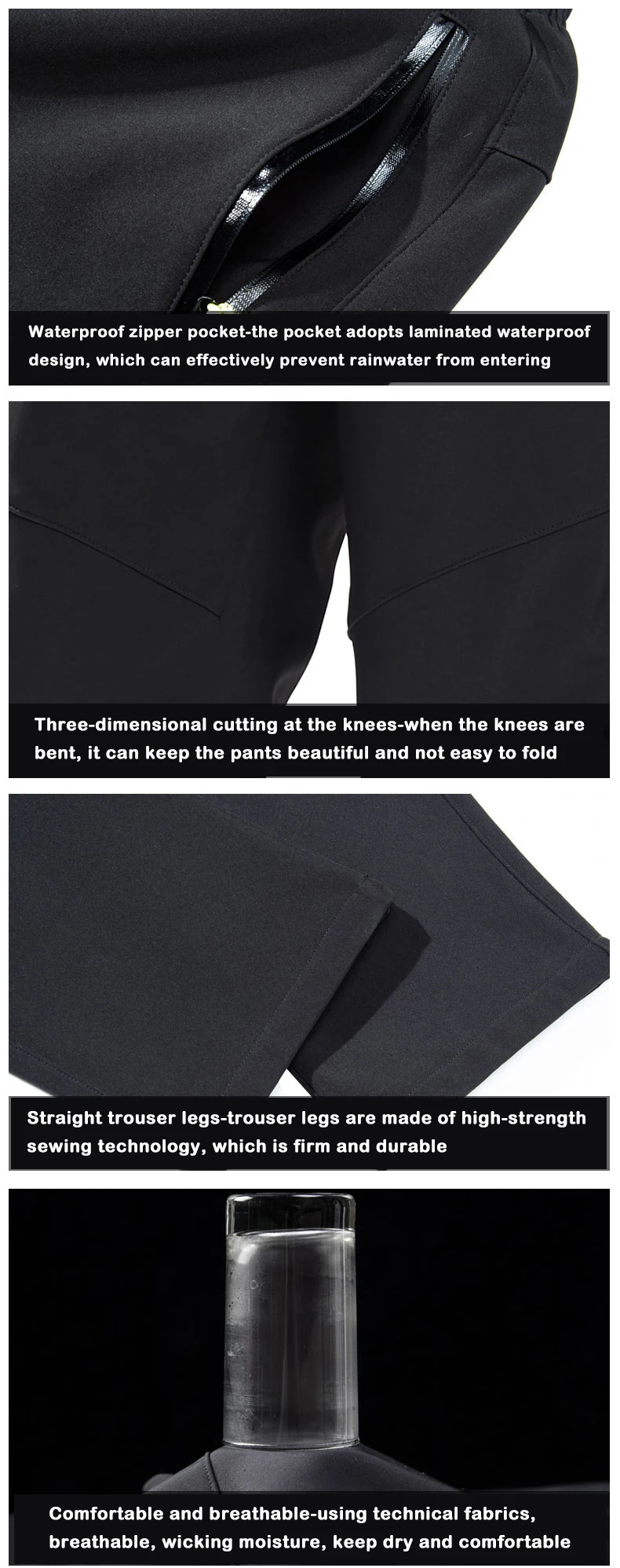 5. трехмерный крой на коленях-когда колени согнуты, брюки могут оставаться красивыми и их нелегко складывать.