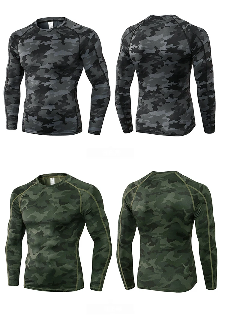 Мужская камуфляжная облегающая футболка для бега, Спортивная футболка с длинным рукавом для занятий фитнесом, быстросохнущая компрессионная футболка с логотипом на заказ