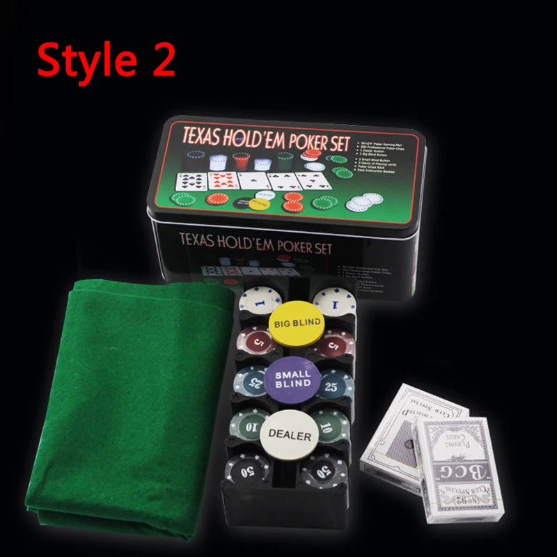 Портативный техасский холдем покер 200 шт набор с фишками покера/скатерти/слепой металлический бокс игра для азартных игр настольные игры Вечерние