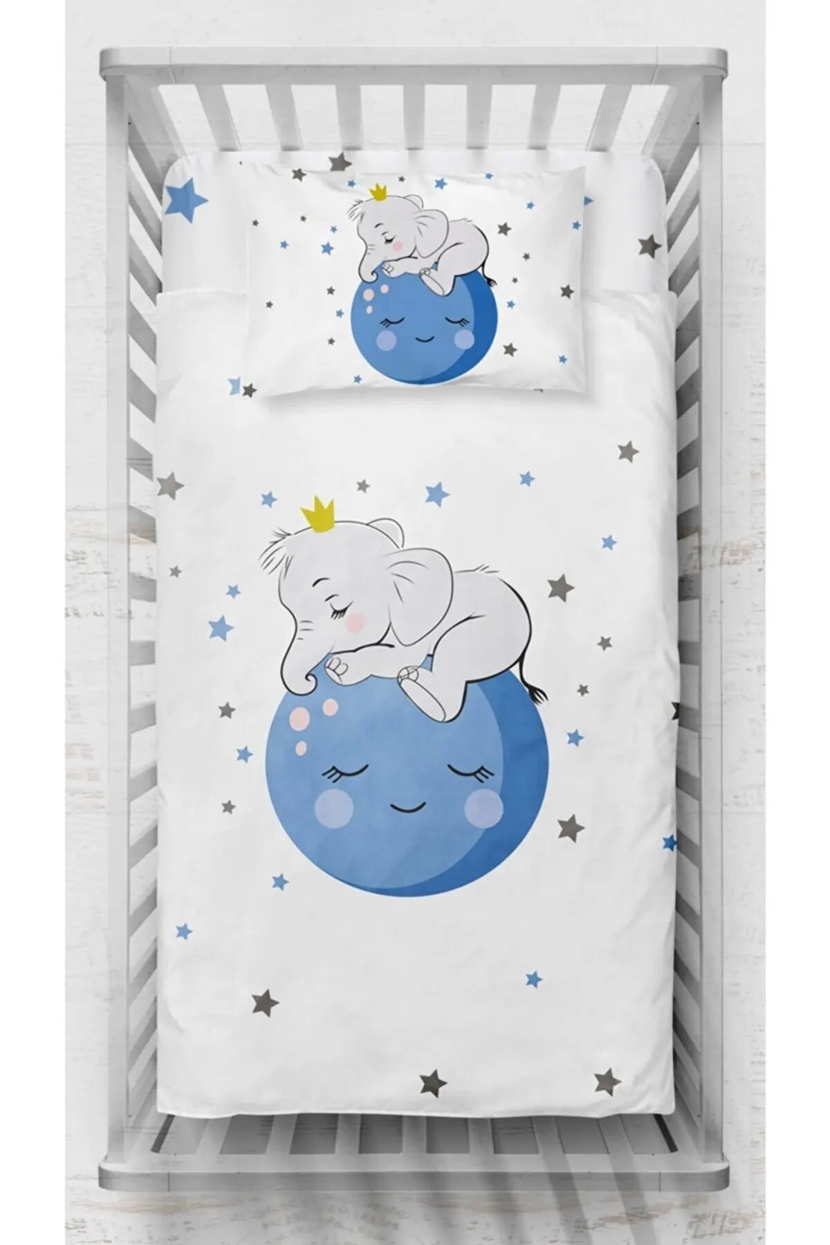 Есть пододеяльник (100x150 см) и 1 наволочка (35x45 см) и печатный лист (110x160 см). Поставляется в специальной упаковке.