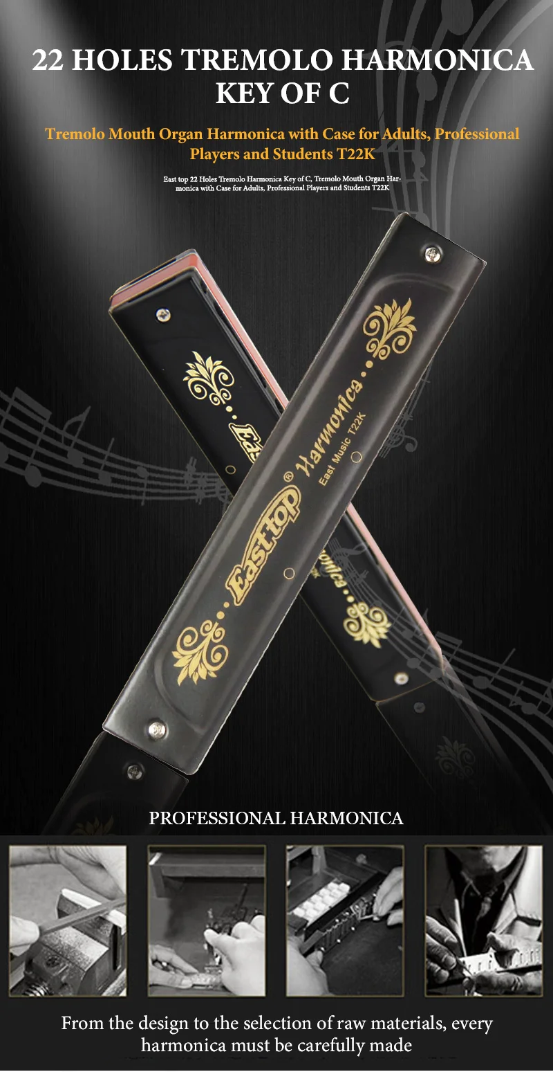 Это East top 22 holes tremolo harmonica, профессиональный музыкальный инструмент, профессиональная Губная гармошка для игрока. Эту гармошку tremolo можно воспроизводить с помощью гитар, скрипок, флейт и других музыкальных инструментов.