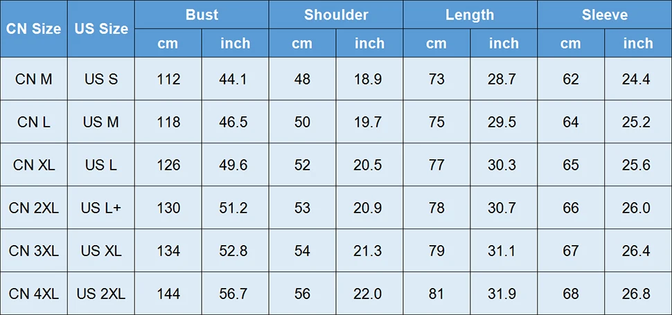 ● По умолчанию указан китайский размер (китайский размер)