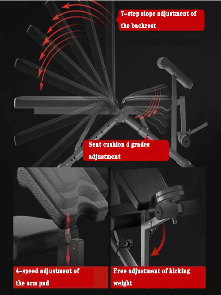 Название продукта: многофункциональные скамья для гантелей Вес брутто: 20 кг Вес нетто: 18 кг Регулировка шестерни: 12 классов регулируется Части упражнений: мышцы в различных частях тела Материал изделия: плотная пена из высококачественной стали из искусственной кожи Применимые люди: мужчины и женщины, молодые и старые фитнес мужчины и женщины