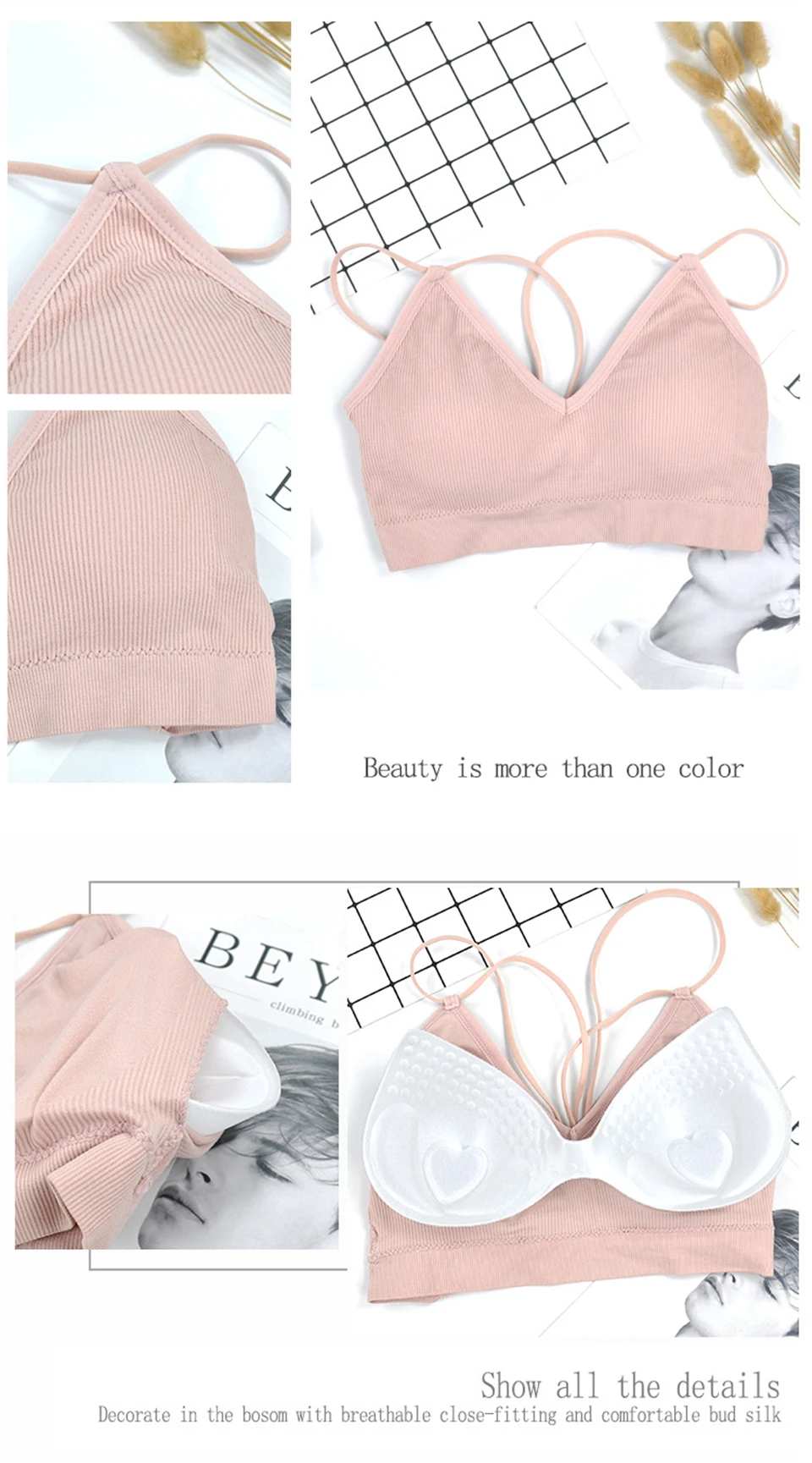 1. Наш бюстгальтер-это один размер, который подходит для бюста ниже 120 см и чашки A,B,C,D.