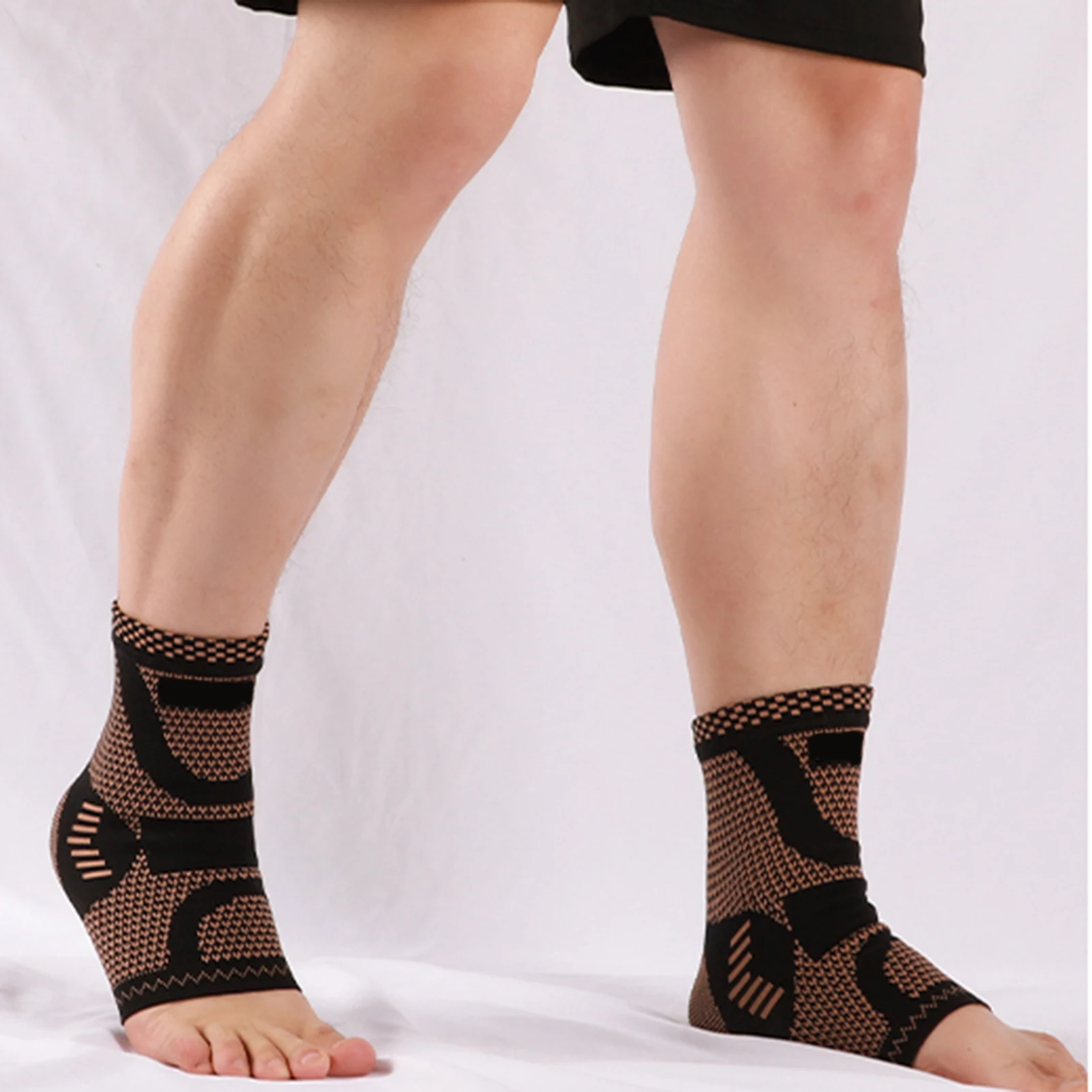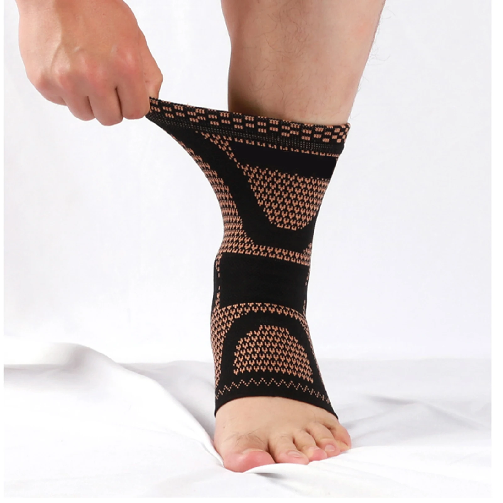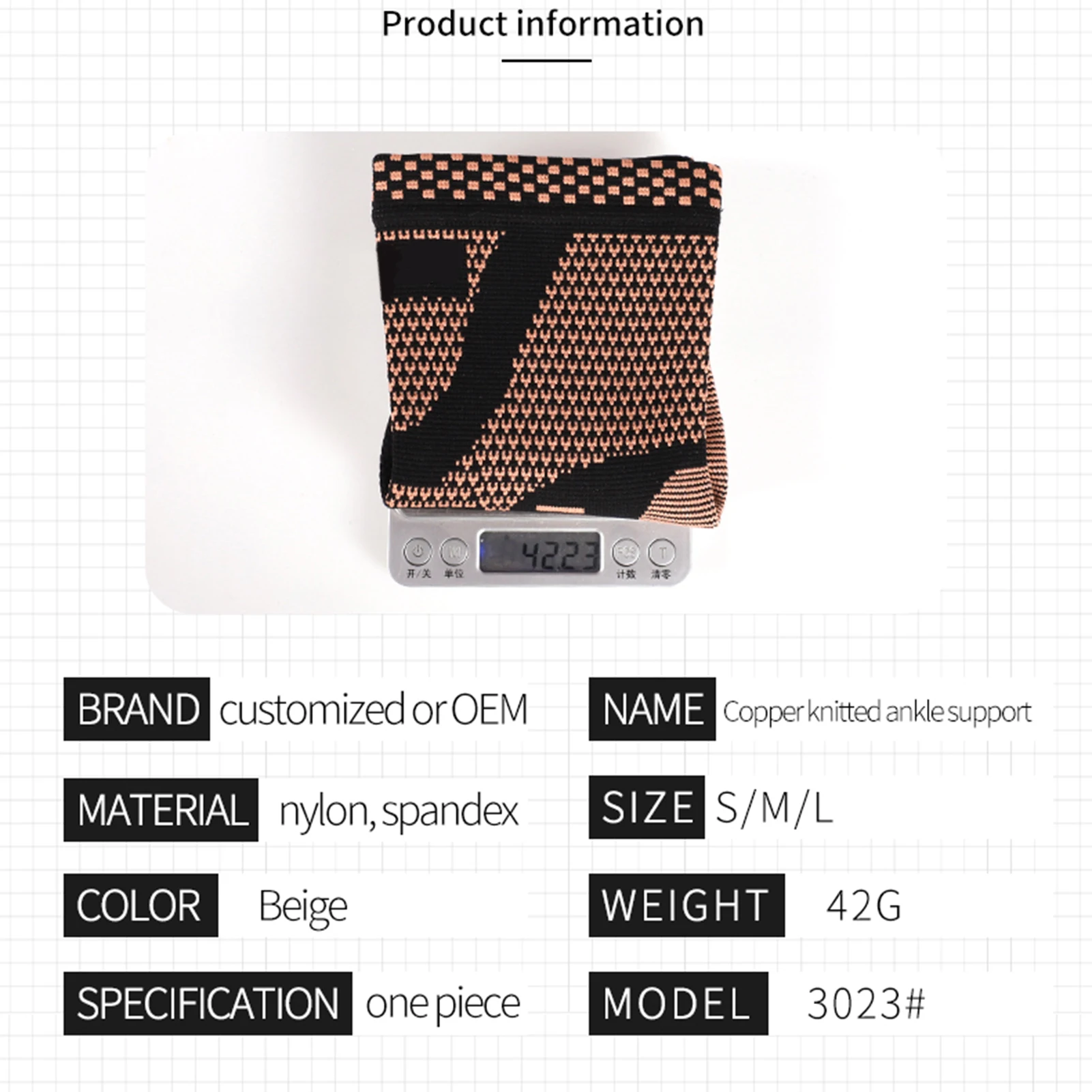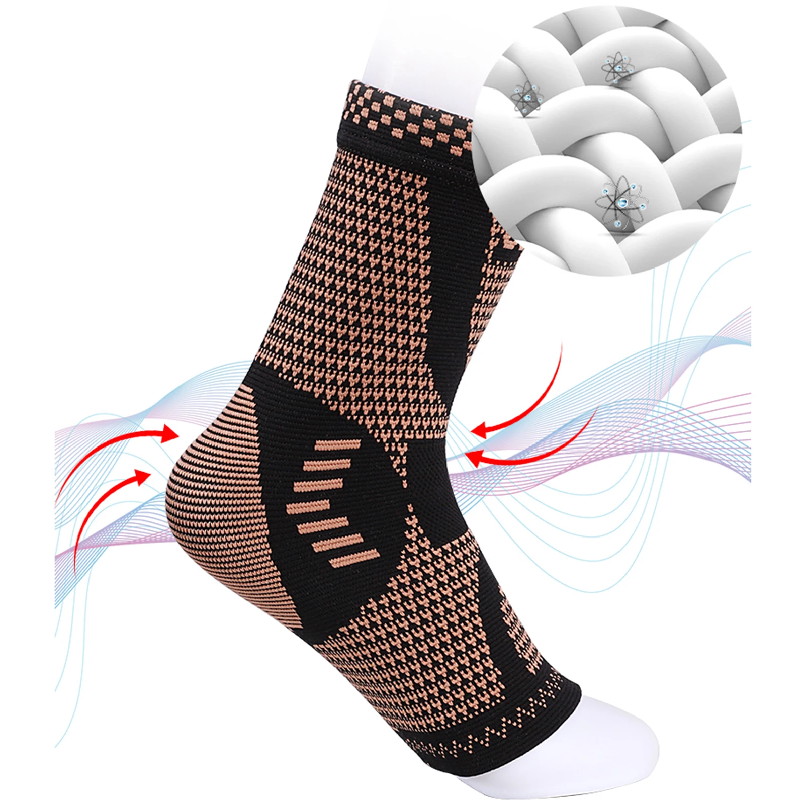 Наш компрессионный бандаж для лодыжки из меди изготовлен из высококачественного нейлона и спандекса, которые пропускают воздух и впитывают пот. Это может помочь выздоровлению, облегчить боль и уменьшить возникновение травм и воспламенения. Подходит для людей, страдающих подошвенным фасциитом, мышечной усталостью или суставами, пятками, отеками ног и травмами лодыжки.