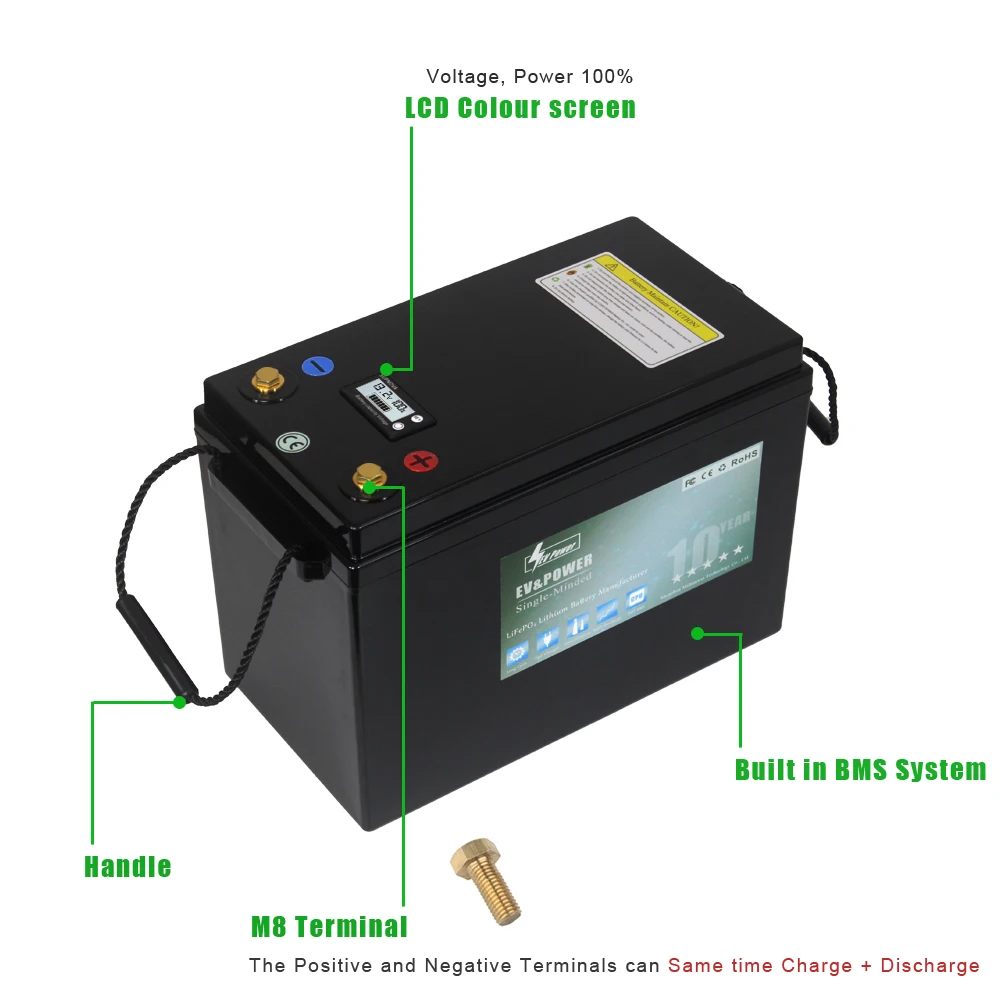Литий-ионная технология: В отличие от свинцово-кислотных батарей, EV Power глубокого цикла литий-ионные батареи имеют неограниченные возможности монтажа, исключительную долговечность и являются более экономически эффективными. При учете времени и стоимости в вашей покупке, наши банки литий-ионных батарей выходят вперед каждый раз. Кроме того, литий-ионные аккумуляторы могут быть безопаснее, чем свинцово-кислотные батареи, которые не имеют защиты от неисправностей на земле.