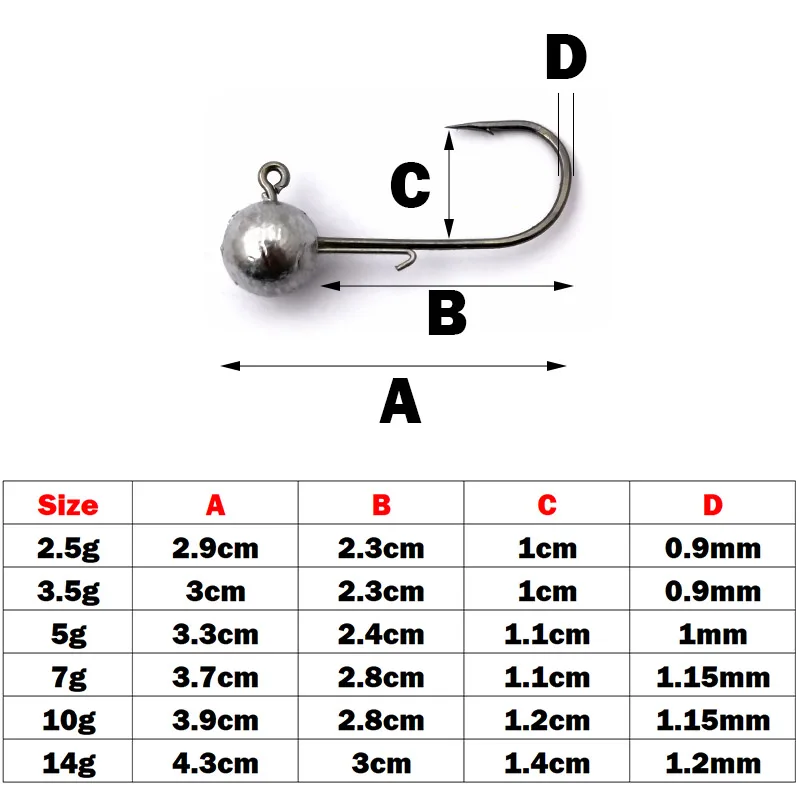 Описание:OUTKIT 5 шт NED Head Jigs Hook 2,5-14 г круглый шар джиг головной крючок Weedless длинный хвостовик вторичные крючки для мягкой червячной рыбалки