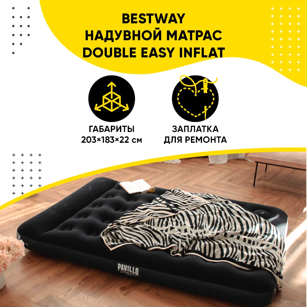 Кровать надувная двухместная BESTWAY Double Easy Inflat, 191x137x22 см, встроенный ножной насос
