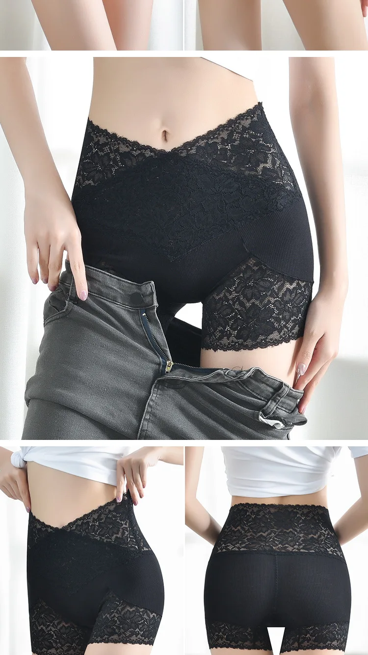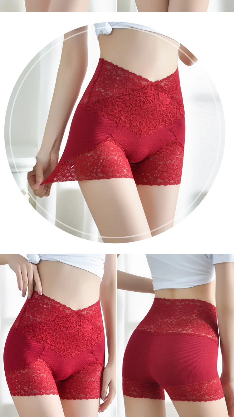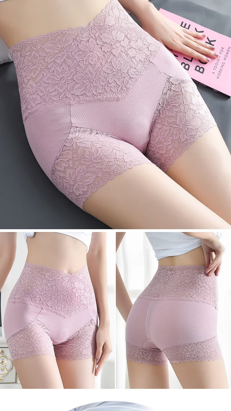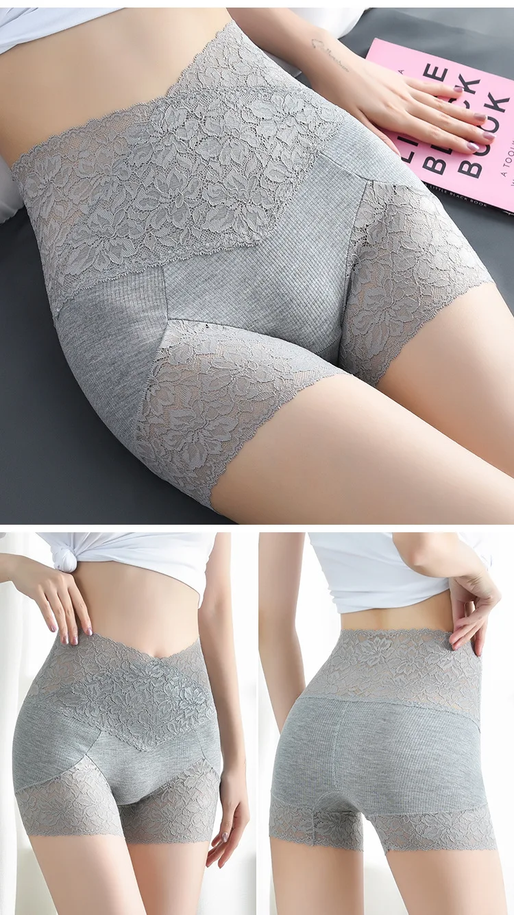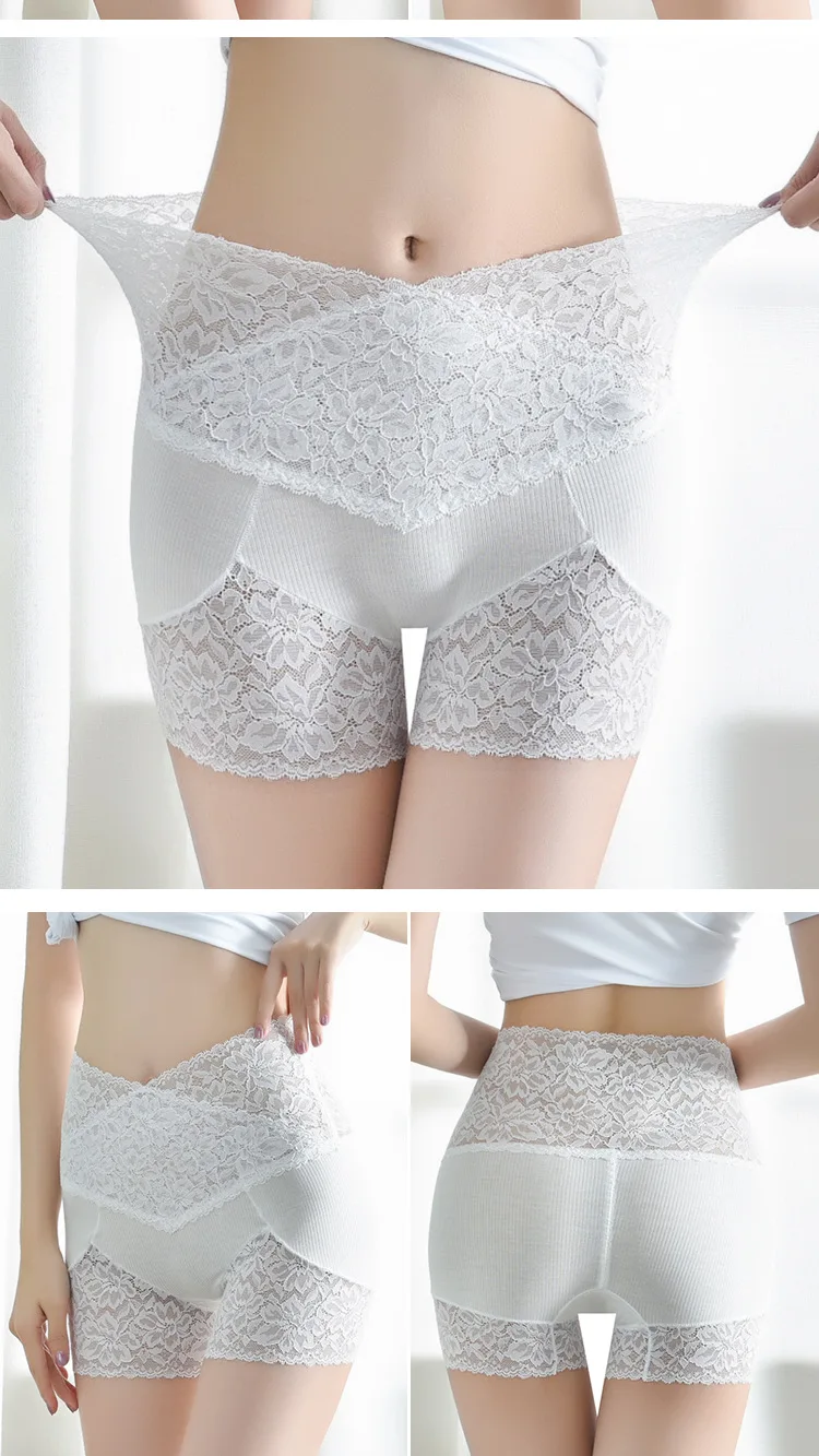 Кружевные безопасные Короткие штаны для женщин, бесшовное нижнее белье, сексуальные шорты-боксеры, дышащие трусики с высокой талией, летнее нижнее белье