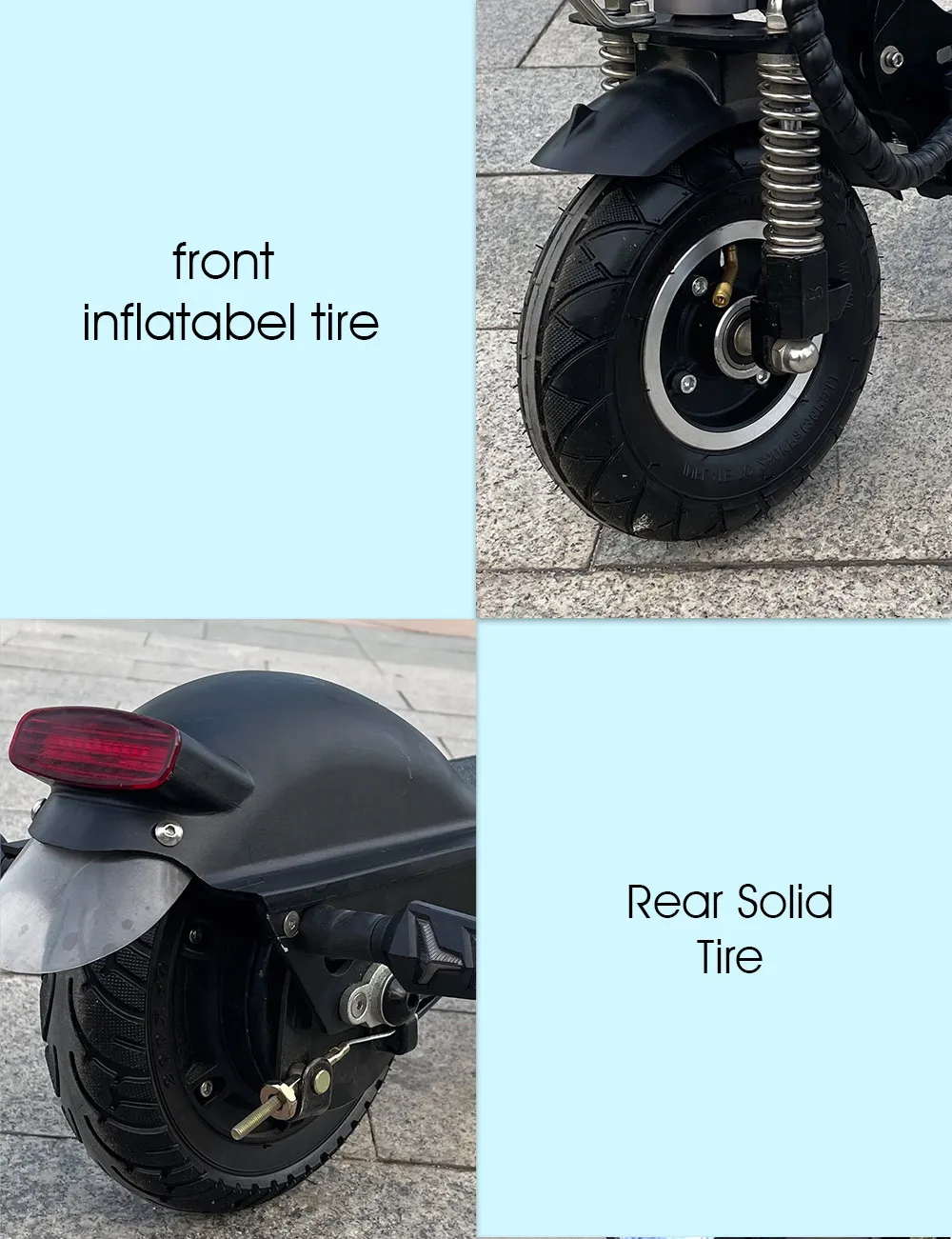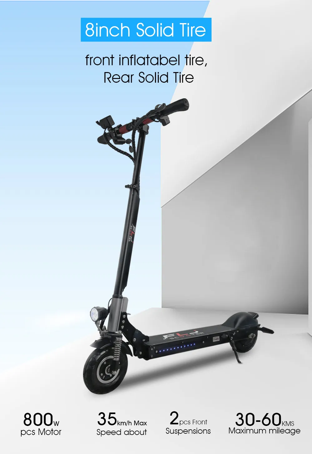 -- 8 дюймовые шины (передние надувные + задние твердые)