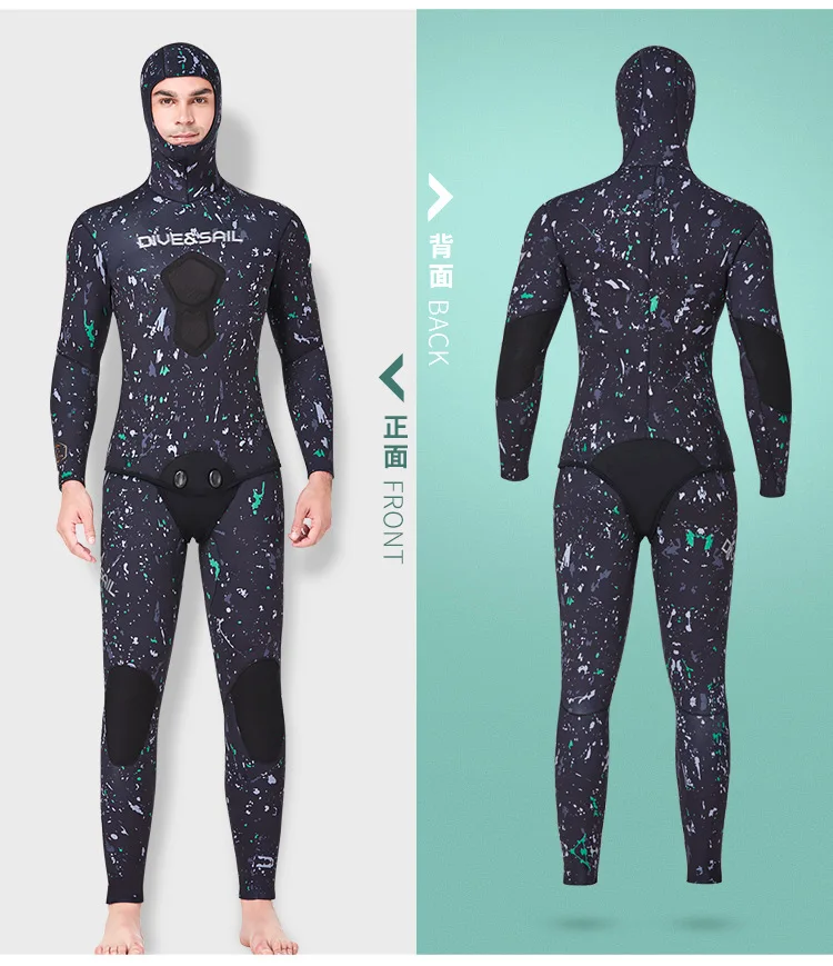 5 мм гидрокостюм для подводной охоты, мужской костюм для дайвинга, комплект из 2 предметов, неопреновый Камуфляжный костюм с капюшоном для дайвинга