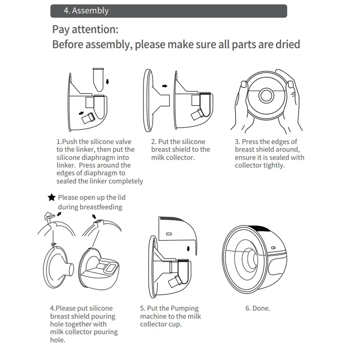 【Удобно носить 】 мягкий и гибкий, отличается от других твердых пластиковых грудных раковин, весь наш был изготовлен из пищевого силикона + ПП + АБС, безопасность BPA бесплатно и без фталата, при сборе молока, хорошо сидит на груди, очень удобно, гарантируя, что ребенок пьет безопасное молоко.