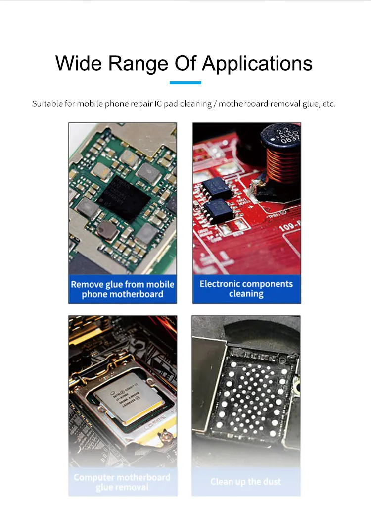 > Подходит для ремонта на мобильный телефон, очистка IC pad/клей для удаления материнской платы и т. д.