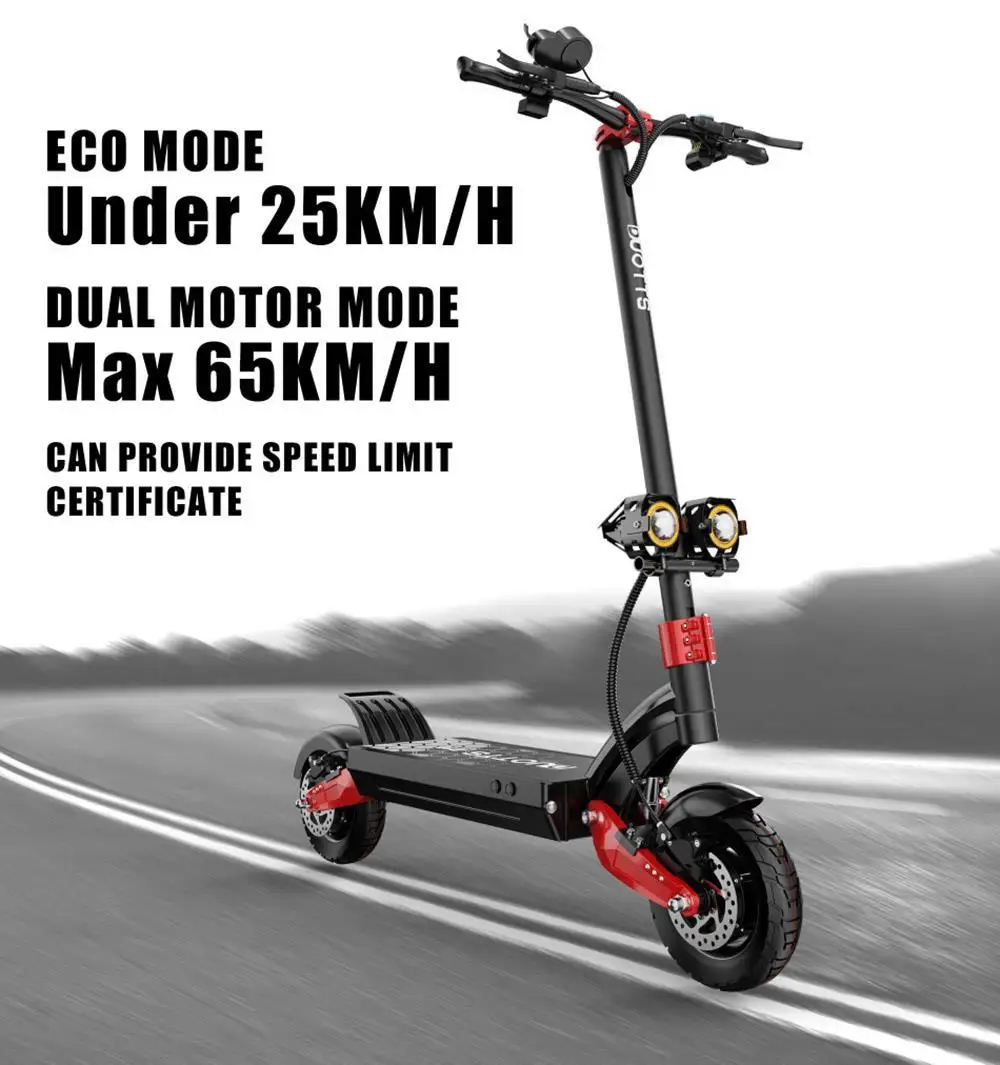 Повышает скорость езды. Двигатель D10 1600 Вт * 2 обеспечивает максимальную скорость 65 км/ч.